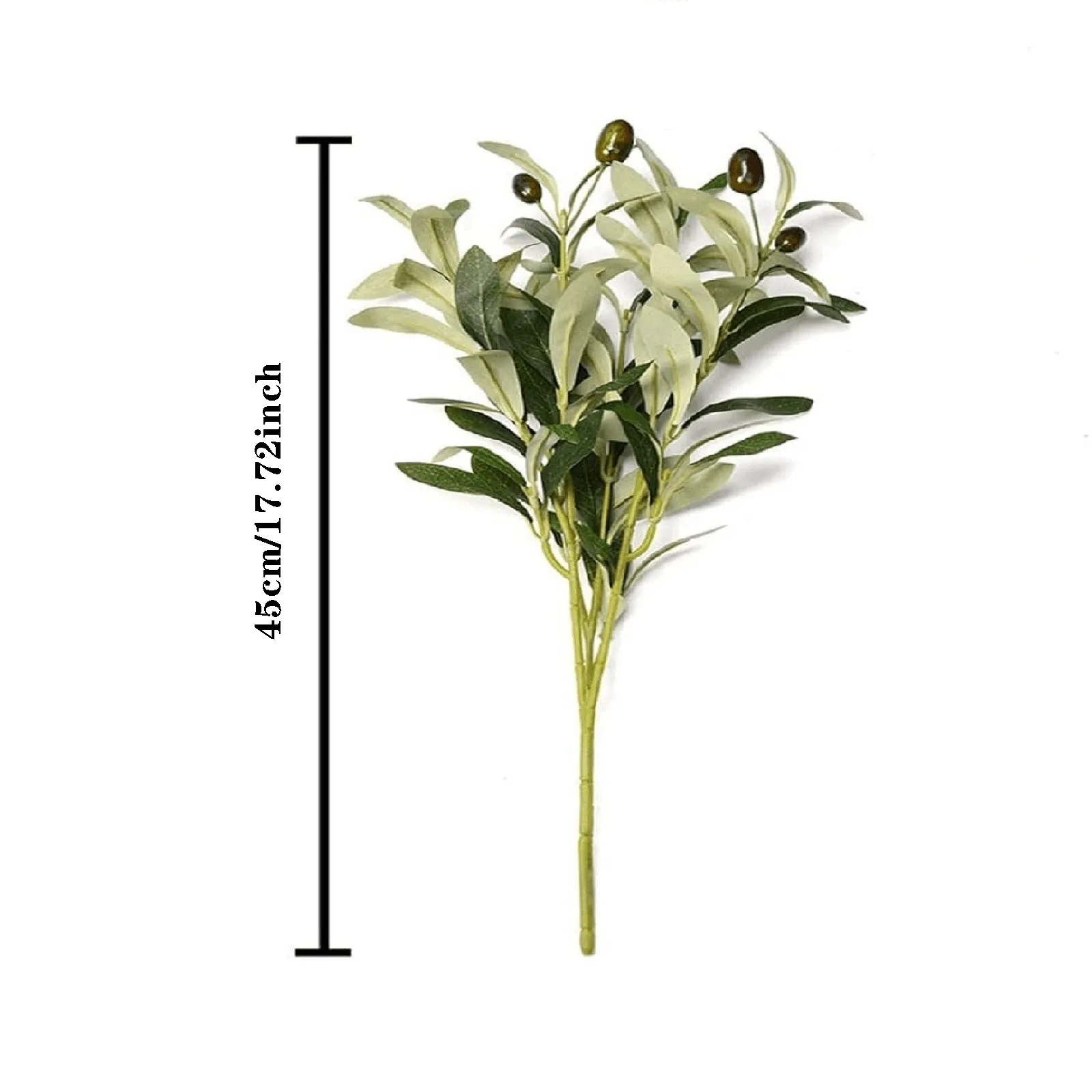 | Chaque vapeur de branches de feuilles d’olivier mesure environ 14 pouces de haut; Feuilles de soie, tiges de verdure en plastique, fruits en mousse, le fil est enveloppé dans la tige |