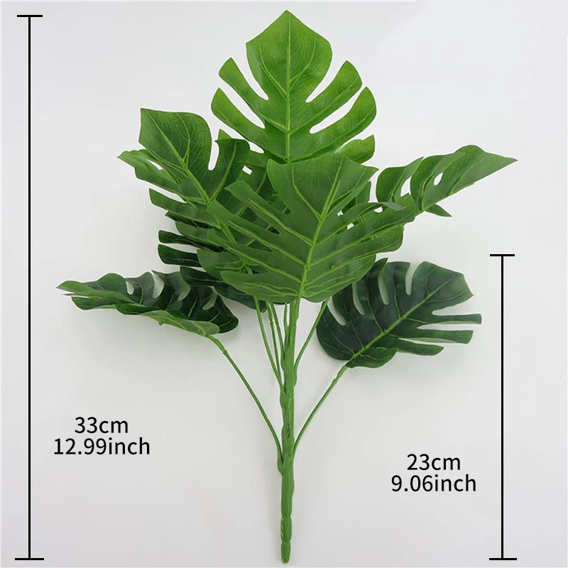 La longueur de ces feuilles de palmier vertes artificielles est de 33cm.