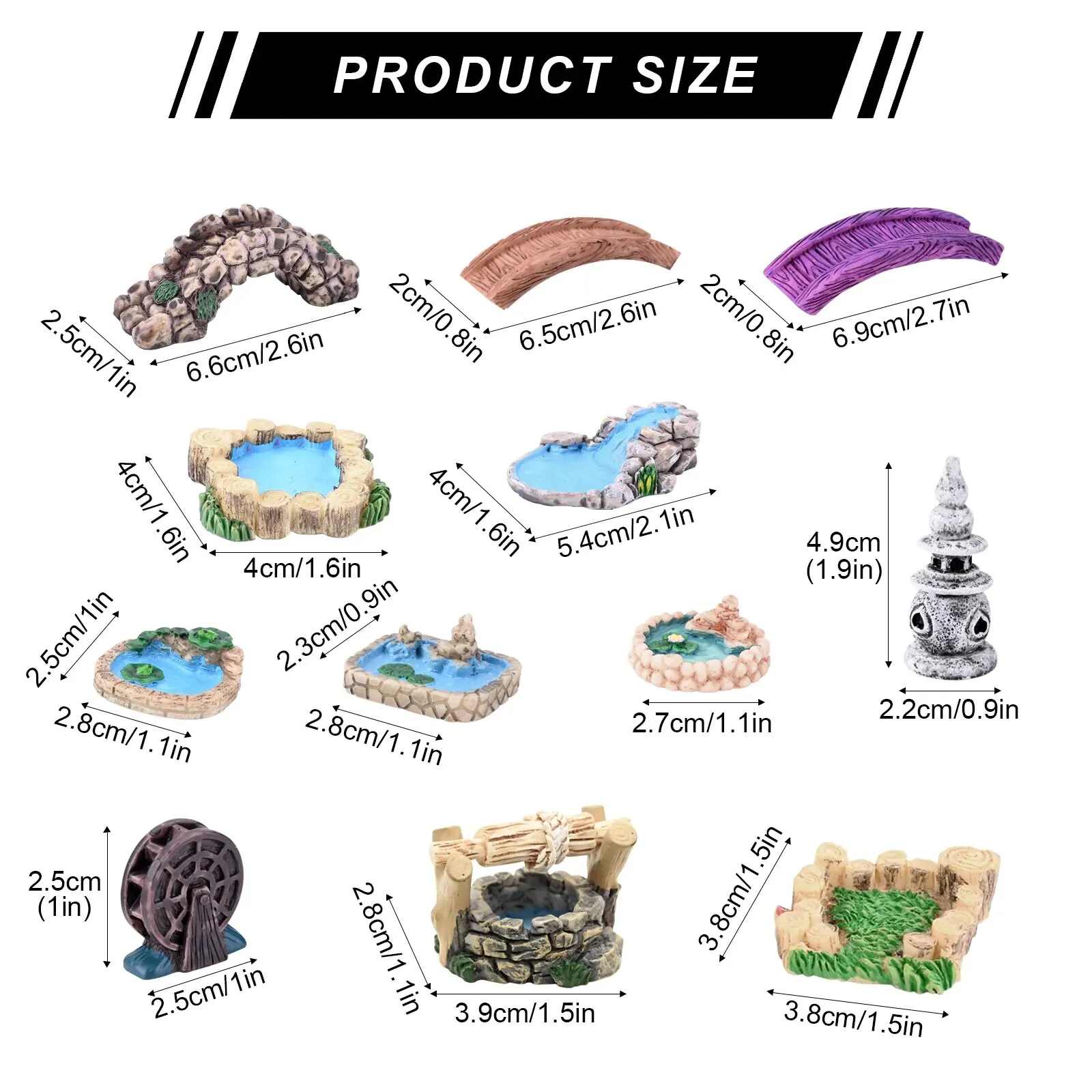 Les Figurines miniatures d’artisanat de micro-paysage, 12 pièces, accessoire de jardin nickel é, pont d’étang, puits d’eau sont des ornements de jardin de pelouse d’étang avec un style différent. Cet ensemble d’accessoires Fairy Garden comprend des figurines de mini phare, de pont de puits d’eau, de jardin de pelouse de micro étang, etc. Ces figures miniatures sont idéales pour vos projets de bricolage et de décoration.