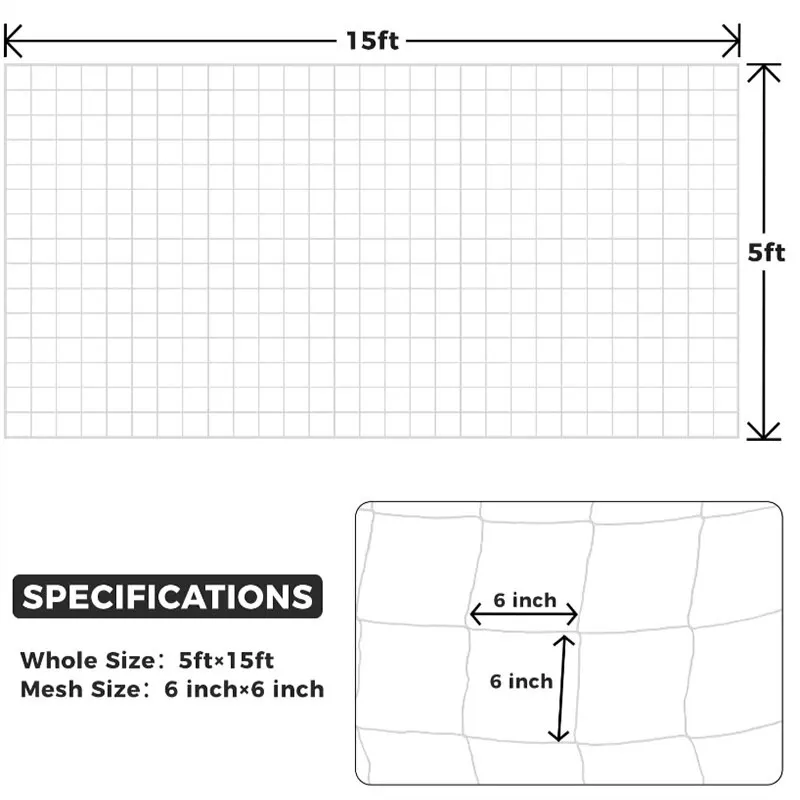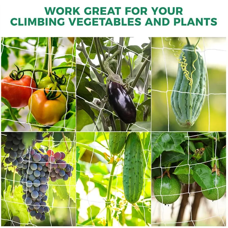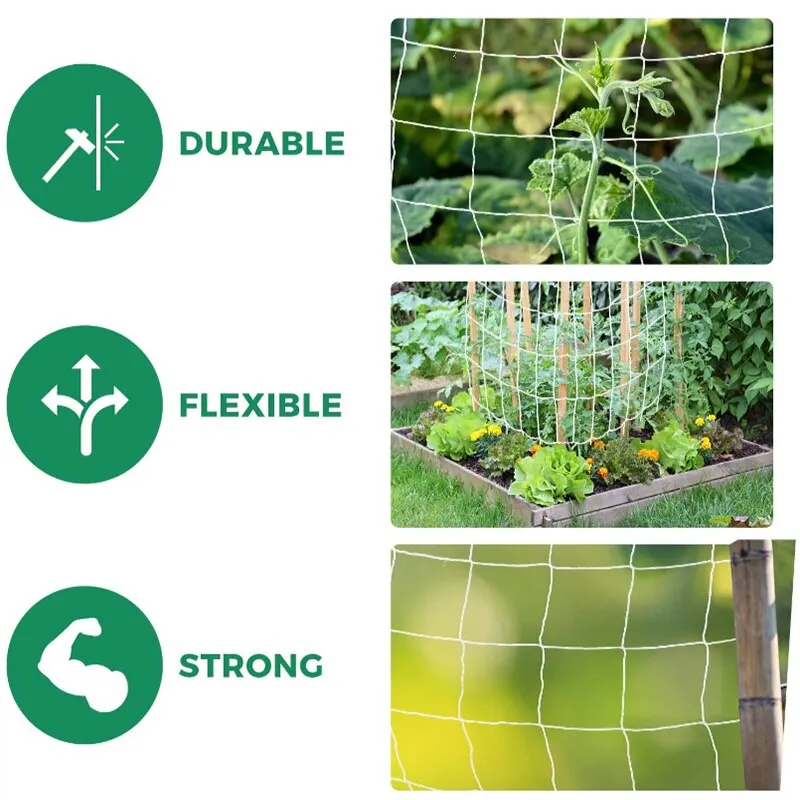 | Polyester robuste | Fabriqué en polyester robuste, ce filet de treillis pour plantes offre un support durable pour les vignes et les légumes hydroponiques dans votre jardin. |