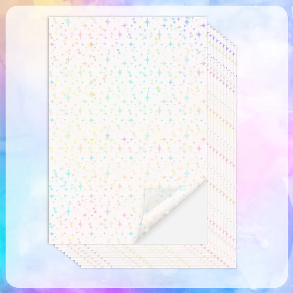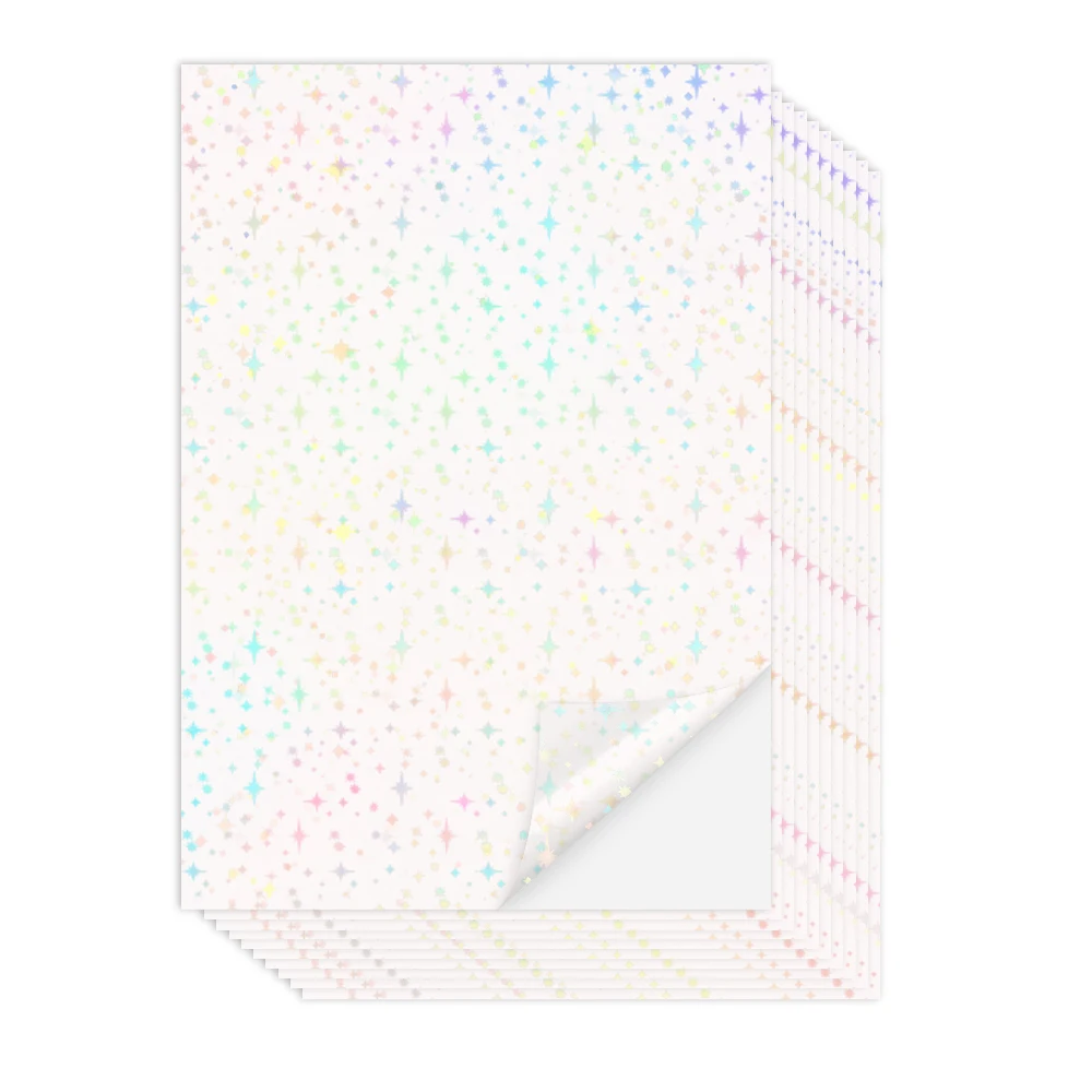 Le paquet est livré avec 10 feuilles de papier autocollant transparent au format A4, différents motifs, y compris, spot, étoiles, gemme, cœur, papillon de ce que vous avez choisi, pour rendre vos projets d’artisanat plus beaux, une quantité suffisante peut répondre à vos besoins.