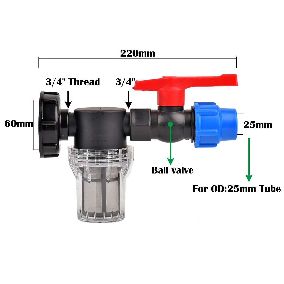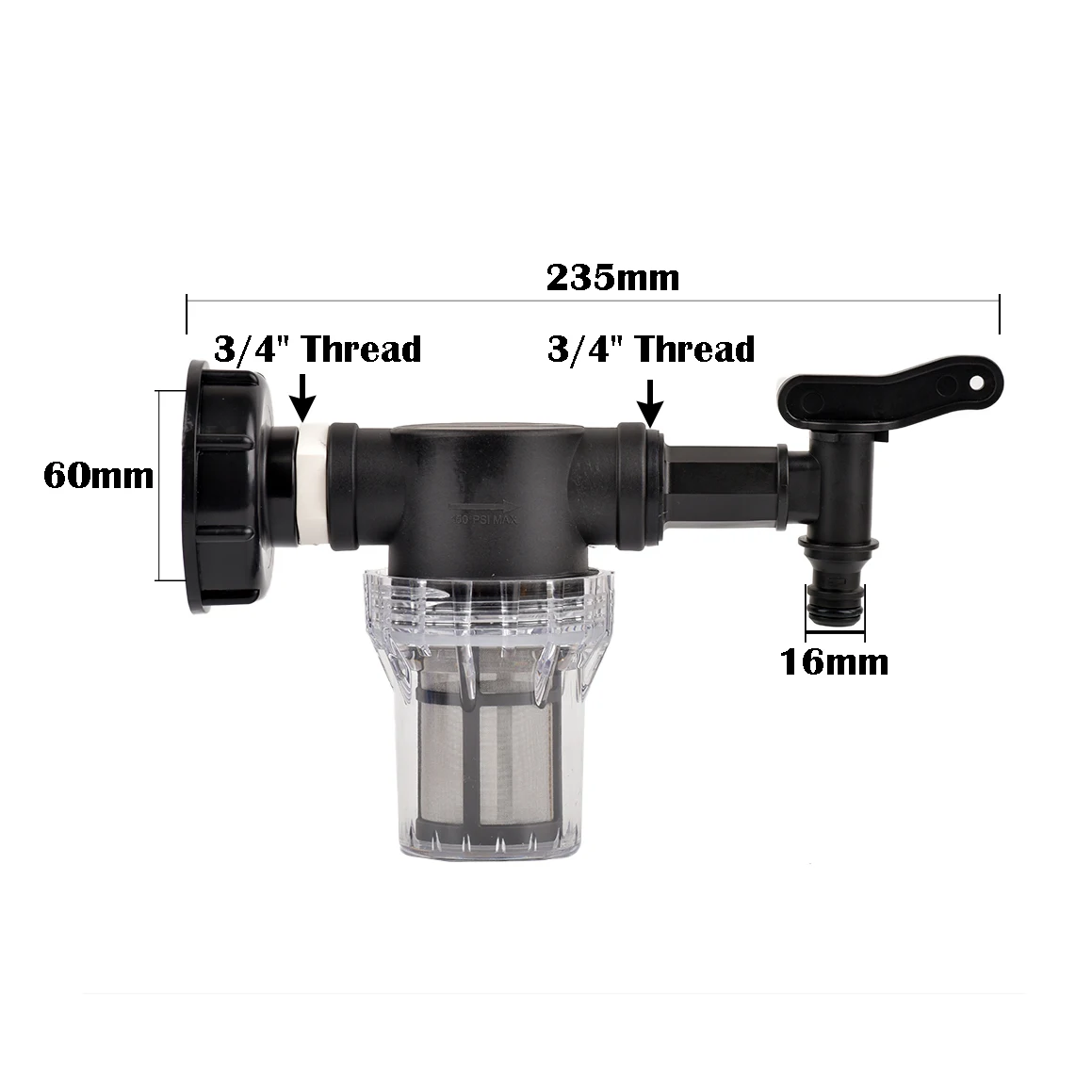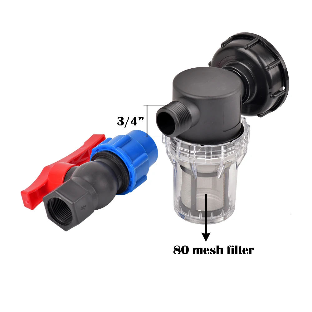 Filtre d’irrigation d’arrosage de 3/4 pouces pour IBC Ton Barrel Filter Ton Barrel Joint Connecteur de tuyau d’arrosage Aquarium Pompe Crépine