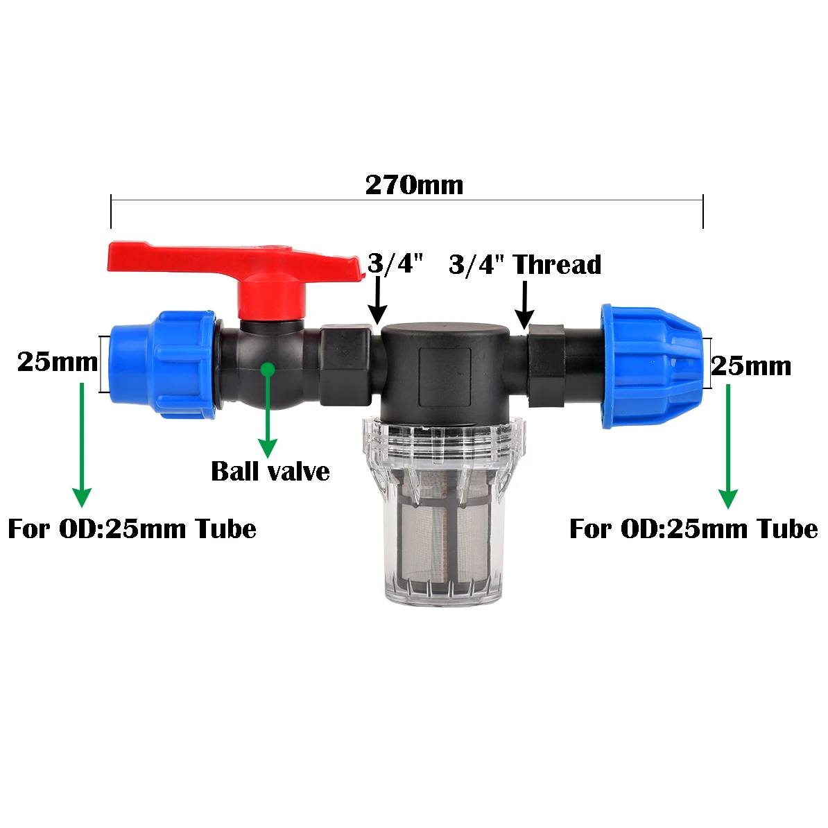 Filtre à eau à écran de 80 mailles pour robinet de réservoir Ibc Connexion de sortie d’eau OD 25mm PVC PPR PE Filtre de tuyau d’eau domestique d’aquaculture