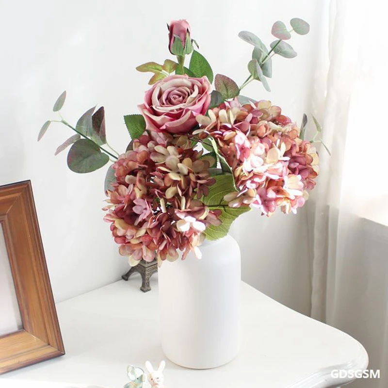 Les fleurs artificielles en soie Hortensia Vase sont parfaites pour la décoration de la maison et les accessoires de mariage. Ces fausses plantes peuvent également être utilisées pour créer une guirlande de Noël. Fabriquées en soie de haute qualité et en plastique, ces fleurs sont durables et résistantes. Elles sont livrées en bouquet et sont disponibles dans différentes couleurs.