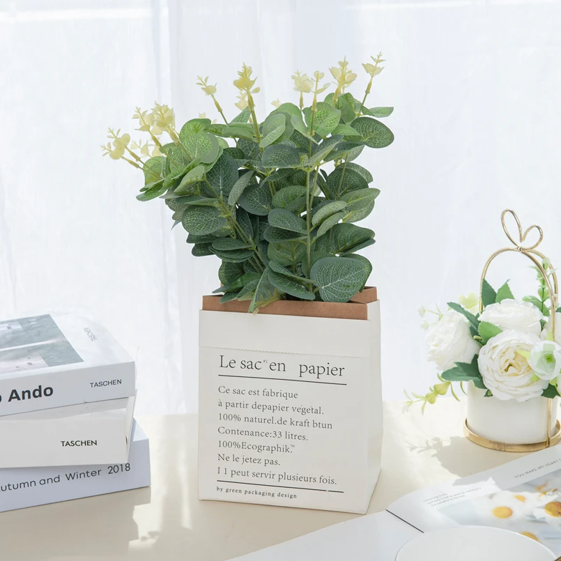 100 pièces fausses plantes soie Eucalyptus feuille bricolage décorations de noël Vase pour la maison jardin mariage Scrapbooking fleurs artificielles