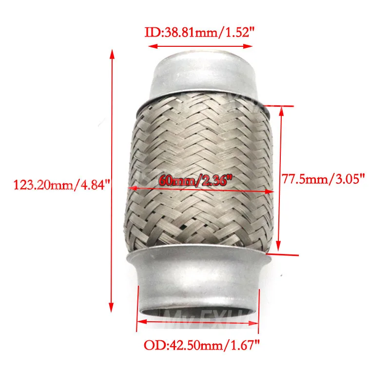 Tuyau flexible en acier inoxydable pour silencieux, tube de joint flexible à double tresse, tuyau de soudure pour voiture, connecteur flexible, 38x123mm
