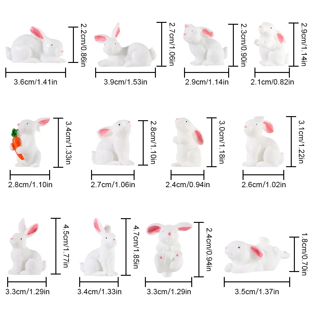 Les tailles des figurines de lapin varient entre 2.1 cm et 4.7 cm.