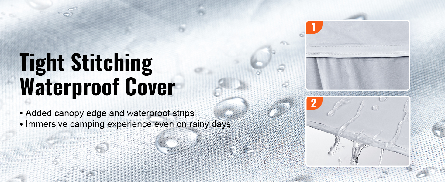La tente portable de 10×10 pieds est dotée d’une housse 500D revêtue d’argent PU qui offre une protection UV UPF 50 + et une protection ignifuge CPAI-84. Les velcros sans couture peuvent être assemblés et démontés à volonté et ne laissent pas facilement fuir l’eau. Offrez à votre famille une expérience de camping en plein air plus confortable.