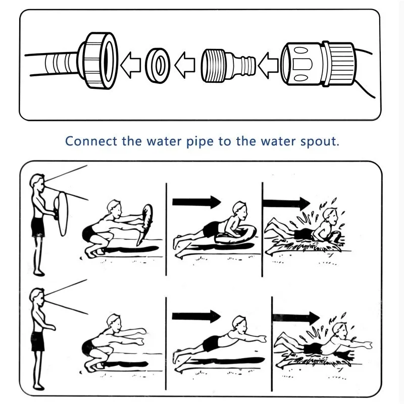 Ce produit dispose d’une fonction de pulvérisation d’eau d’un côté. Il n’a pas besoin d’être gonflé. Après avoir connecté un tuyau d’eau, l’eau continuera à pulvériser. Il doit être connecté au robinet en permanence. Il est recommandé de l’utiliser sur l’herbe.