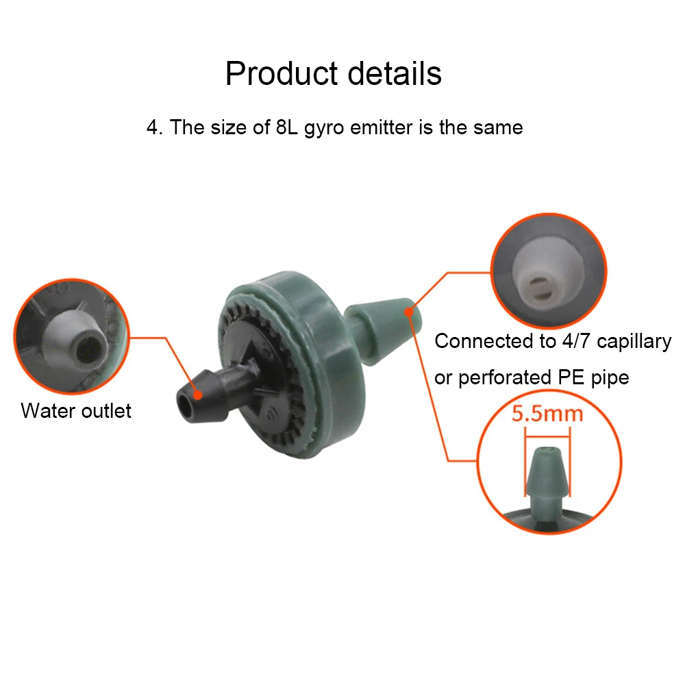 En résumé, le goutteur à débit régulier 2L 4L 8L est un produit fiable et efficace pour l’irrigation goutte-à-goutte dans votre jardin. Il offre un débit d’eau constant, une compensation de pression et une utilisation durable. Il satisfera vos besoins d’arrosage en toute simplicité.