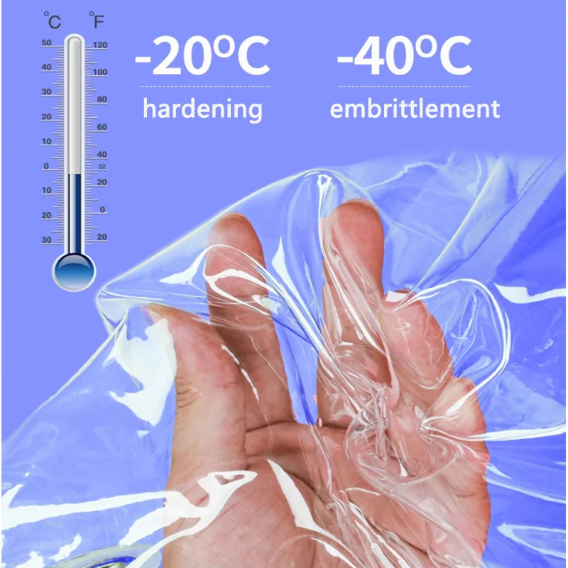 Le tissu imperméable transparent auvent PVC est un produit de haute qualité qui convient à de nombreuses utilisations. Avec une épaisseur de 0,35 mm ou 0,55 mm, ce tissu offre une protection efficace contre la pluie tout en restant transparent à 99%. Fabriqué en PVC, ce matériau résistant est idéal pour une utilisation en extérieur. Vous pouvez l’utiliser comme pavillon extérieur étanche à la pluie, pour protéger vos plantes de jardin de l’humidité ou comme couverture imperméable pour votre voiture ou votre bateau. Veuillez noter que la taille réelle du tissu sera légèrement inférieure à celle indiquée. Personnalisez votre commande pour obtenir la taille exacte dont vous avez besoin.