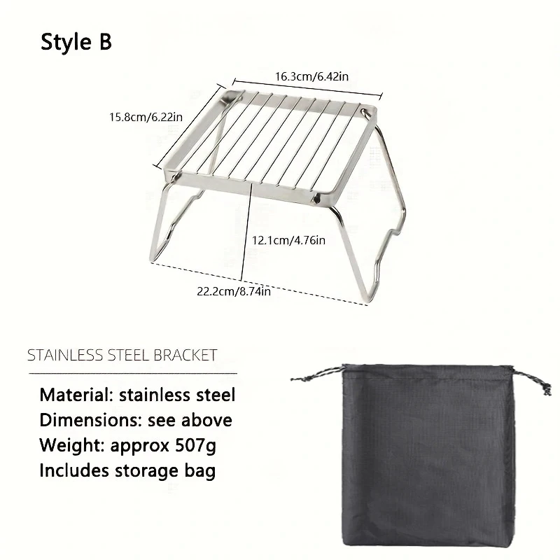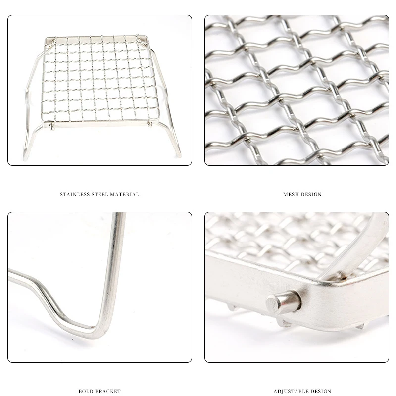 La grille pliante multifonctionnelle pour feu de camp est un accessoire de camping portable en acier inoxydable. Ce support est adapté pour une utilisation avec une cuisinière à gaz ou une poêle à bois en extérieur. Son matériau en acier inoxydable lui confère une résistance à la corrosion et aux hautes températures, ce qui permet une utilisation directe sur le feu. Sa conception pliable en fait un produit compact, avec une épaisseur de seulement 3 cm après le pliage, idéal pour économiser de l’espace de stockage. De plus, sa capacité de charge élevée lui permet de supporter des charges plus lourdes sans se déformer. La grille améliorée offre un espacement modéré de 3 mm, permettant de placer différents conteneurs pour le chauffage. La taille élargie de la grille est de 24x17x13 cm, tandis que la taille pliée est de 17x16x3 cm. Ce support multifonctionnel peut être utilisé comme gril, support de bouilloire, support de poêle, support de poêle à griller, etc.