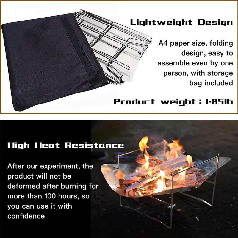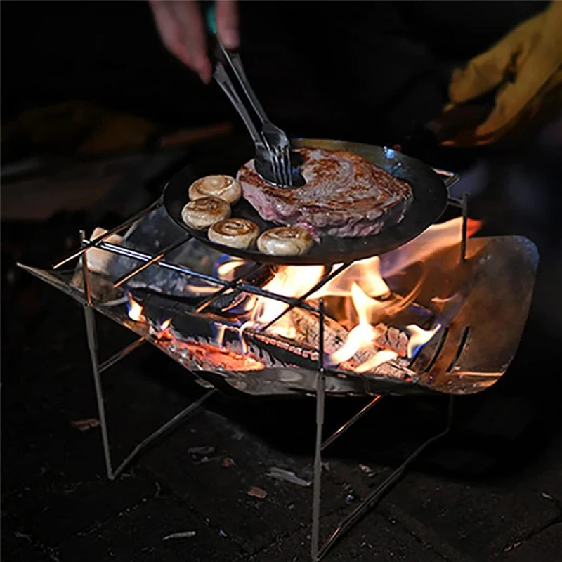 Barbecue pliant Campfire pour votre sac à dos, camping-car, barbecue léger. Très léger et pliable, prêt à l’emploi. Conception résistante aux hautes températures, fonctions riches, stockage compact.