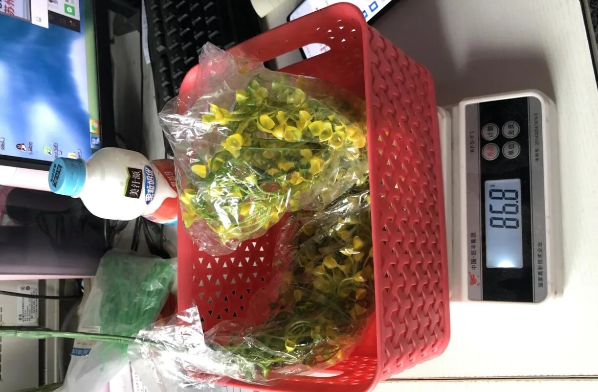 | Matériel: fleurs, feuilles et vignes en plastique |
