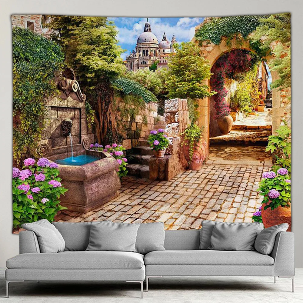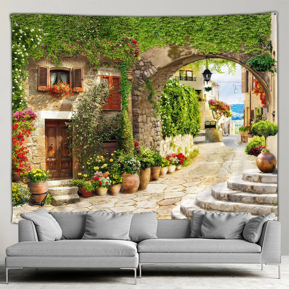 Le paysage méditerranéen représente une véritable oasis de tranquillité dans une chambre ou un salon. Avec cette affiche de jardin extérieur, vous pouvez apporter un peu de cette beauté naturelle à votre intérieur. La tapisserie de fleurs botArabes offre un design exquis et écologique, sans aucune odeur notable. Fabriquée en polyester, elle peut être utilisée comme tapis de plage, tapis de yoga, nappe, tapisserie ou tenture murale.