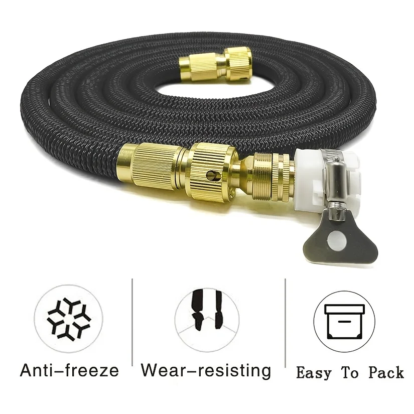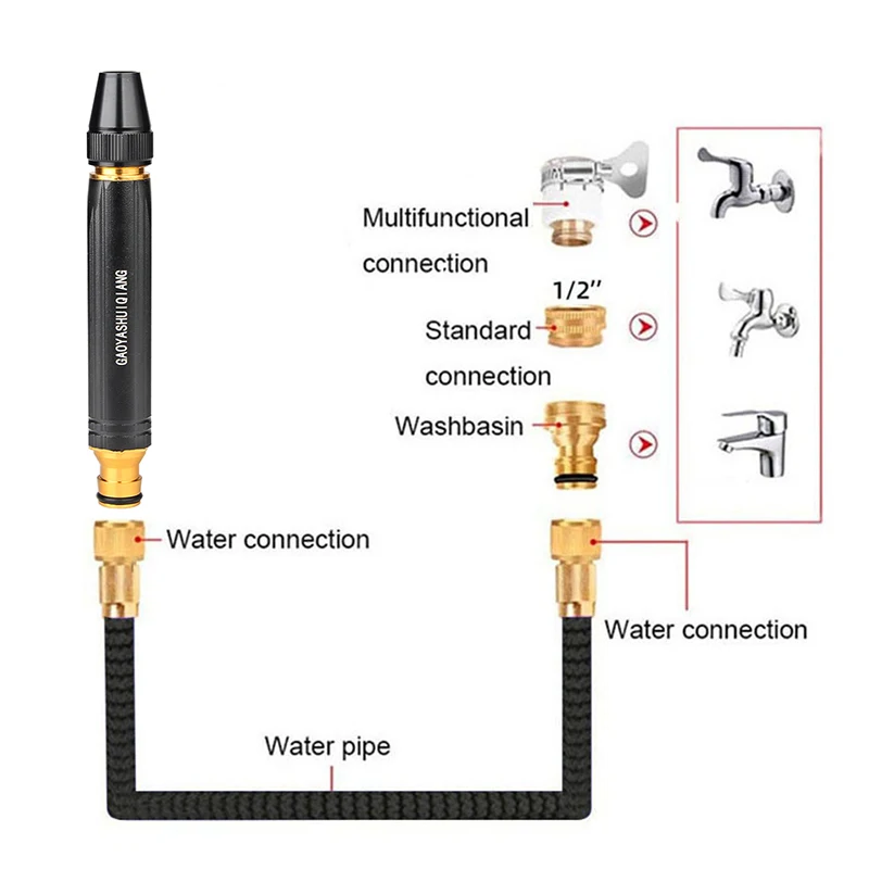 - Style 2: 1 tuyau d’eau + 1 pistolet à eau en acier inoxydable + 2 connecteurs universels en laiton