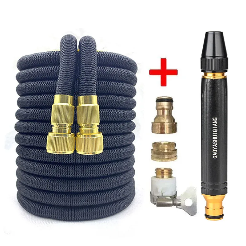 Le tuyau d’eau de jardin est un tuyau robuste en acier inoxydable avec une haute pression et une longueur rétractable. Le tuyau est composé de trois couches en TPE, d’une jonction en aluminium et d’un manchon tressé en polyester. Le pistolet est en alliage d’aluminium.