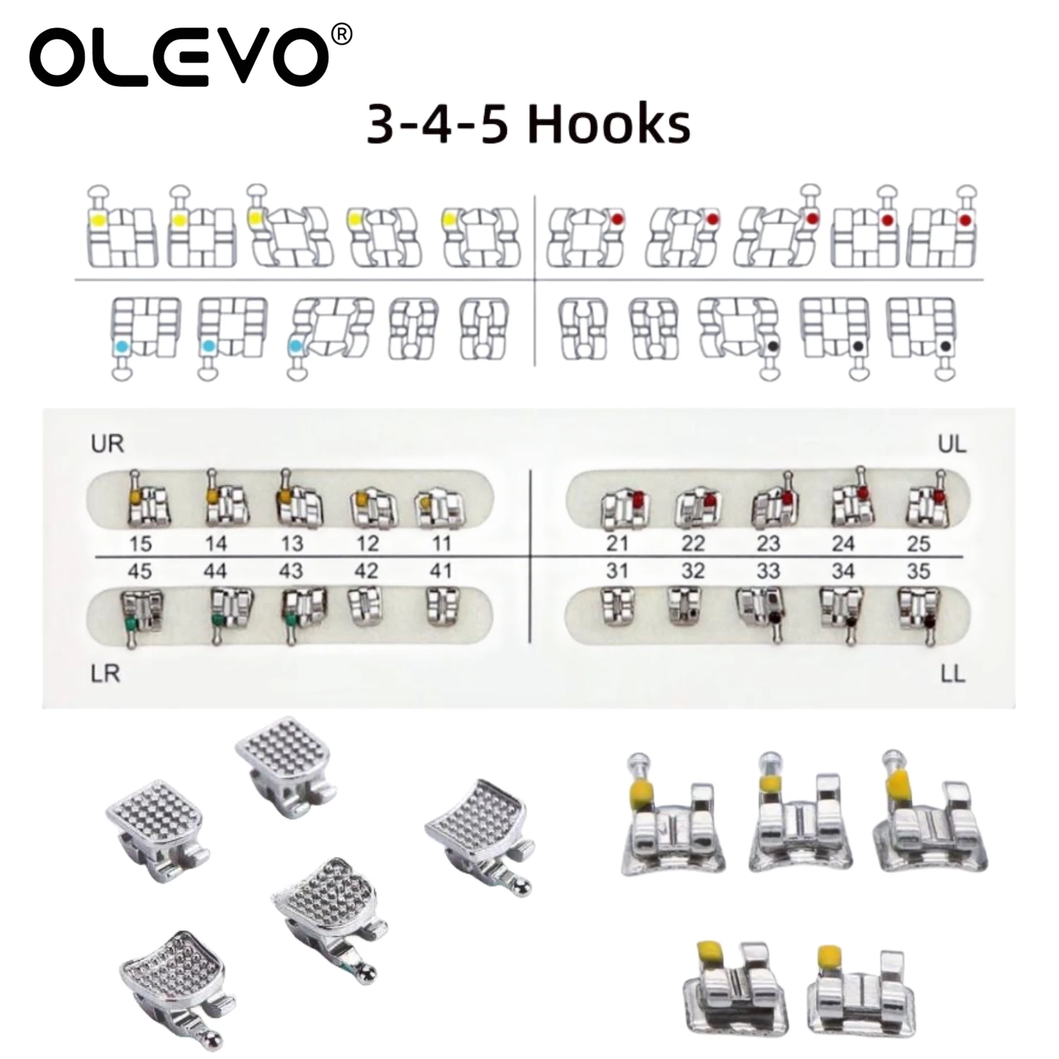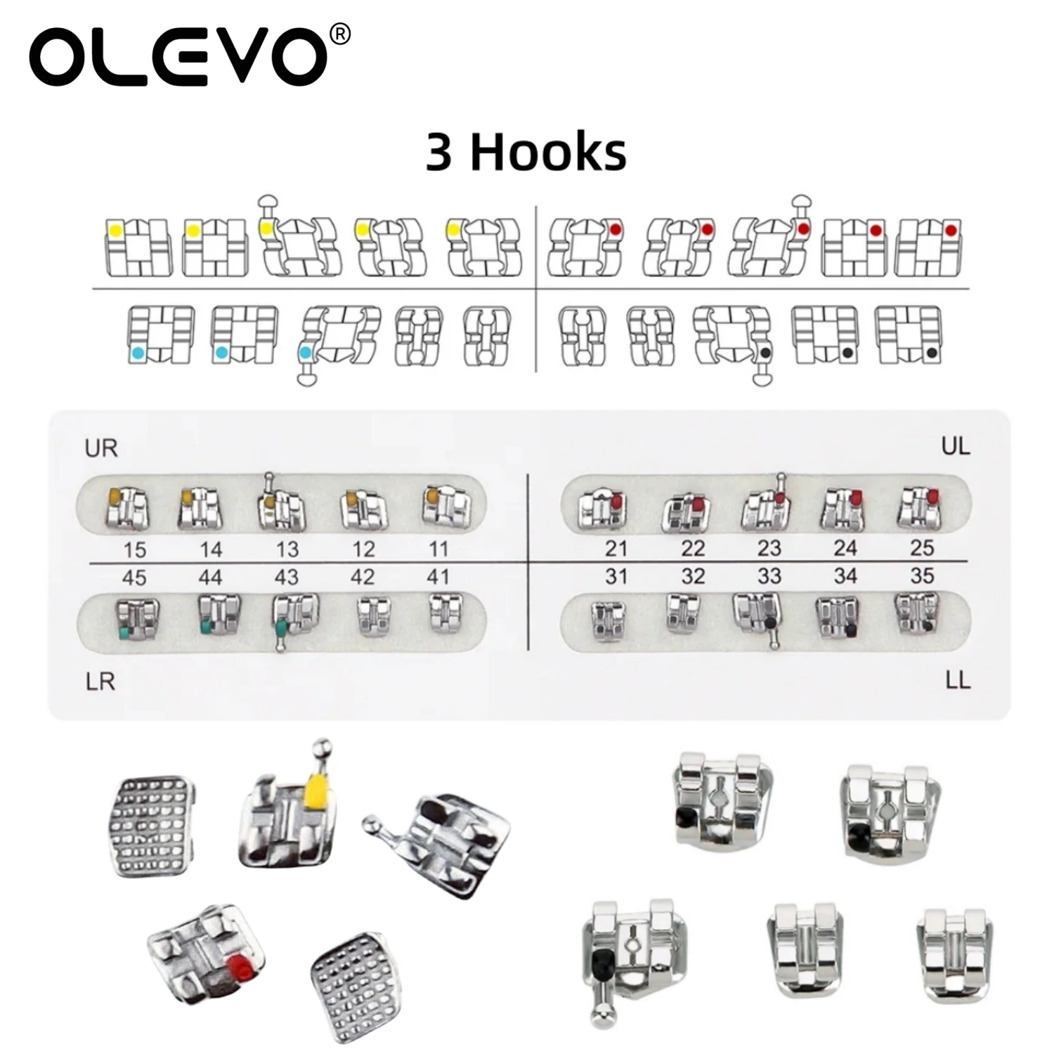 Les crochets disponibles en 3 crochets ou en 3-4-5 crochets offrent différentes options pour la fixation des fils orthodontiques. La fente de 0.022″ ou 0.018″ permet un placement facile et précis des fils. Chaque kit contient 20 pièces, ce qui en fait une solution pratique et économique.