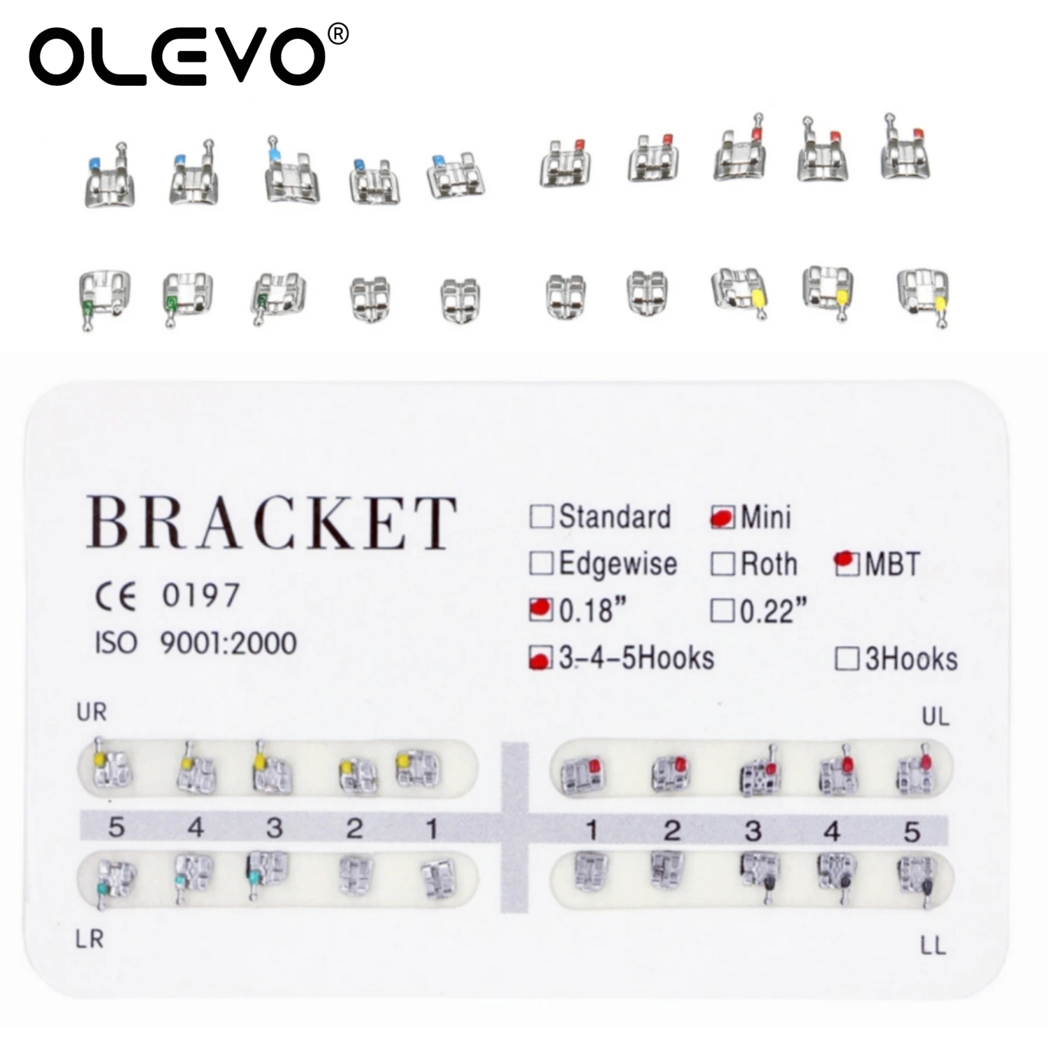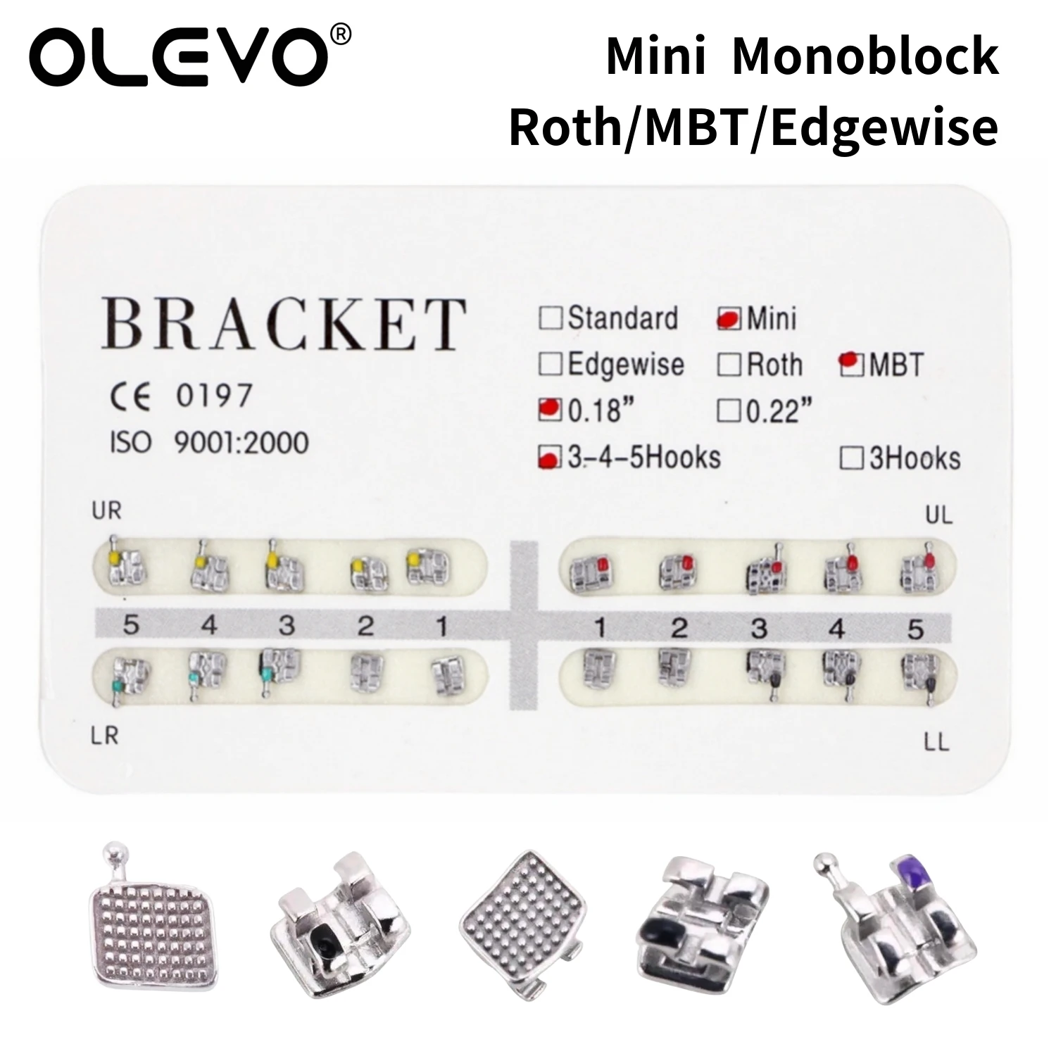 Supports dentaires orthèse orthodontique en métal Mini Roth MBT fente 0.022 0.018 crochets 3-4-5 20 pièces par paquet