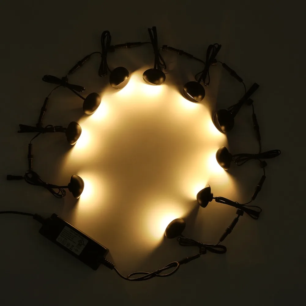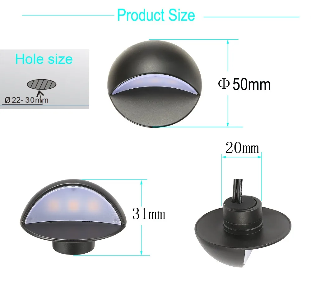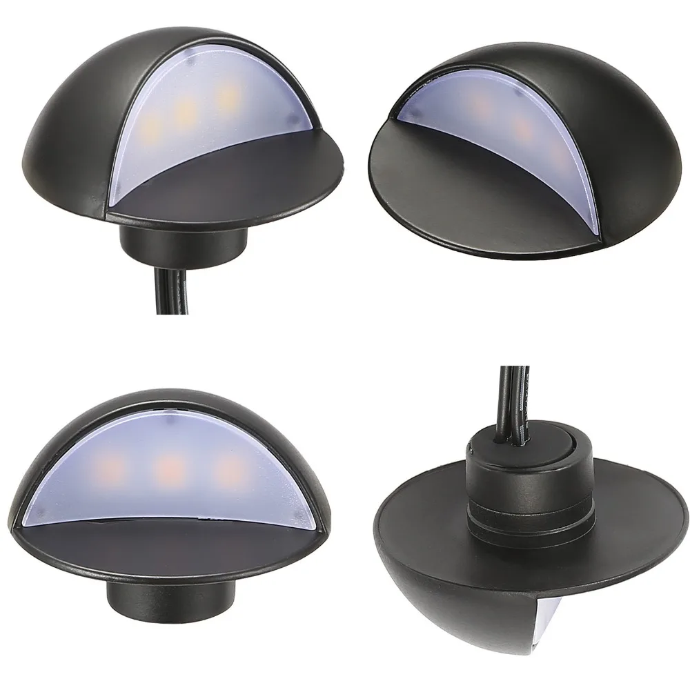 Le kit d’éclairage LED demi-lune noir est un éclairage d’extérieur idéal pour un jardin, une cour, un plancher, des escaliers, une clôture ou un poteau. Ce kit comprend une seule pièce d’éclairage avec une taille de 50 mm de diamètre. Il fonctionne avec une tension de 12V et a une puissance de 1,6W.