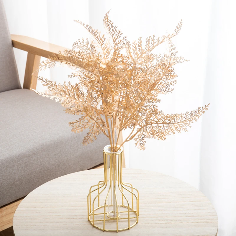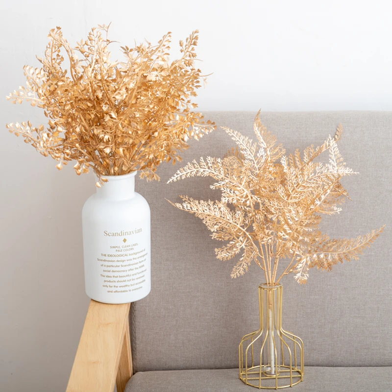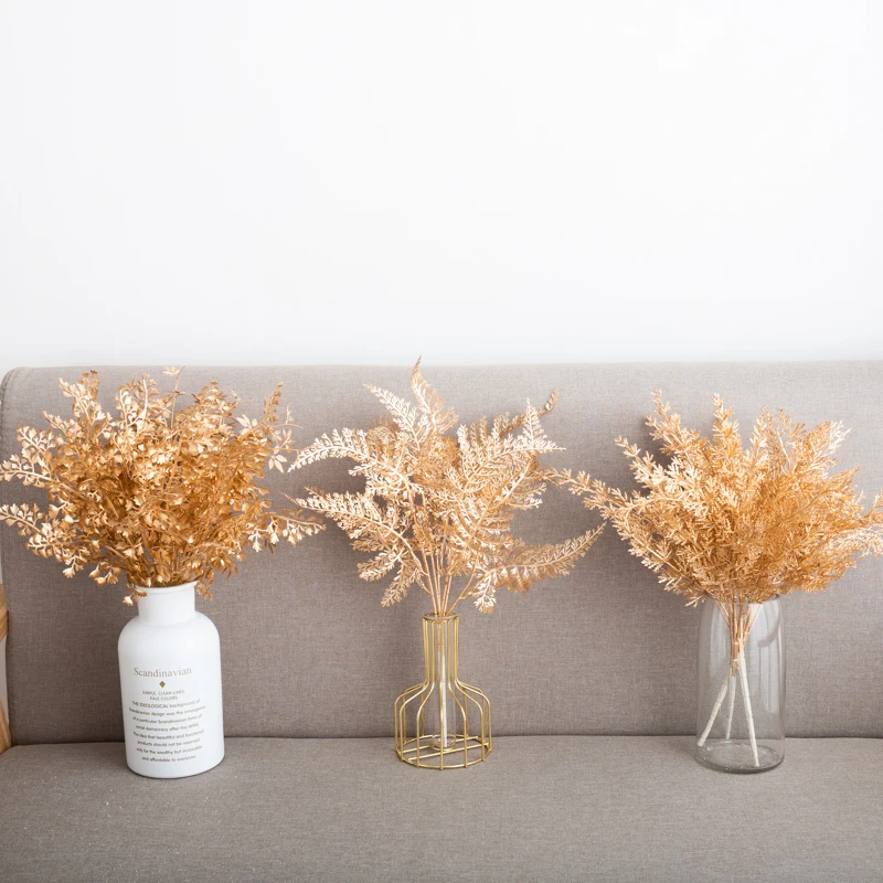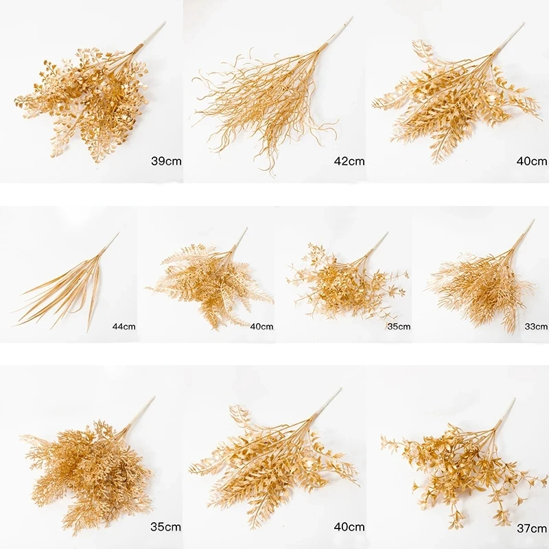 - Plante artificielle en plastique dorée avec des feuilles d’eucalyptus