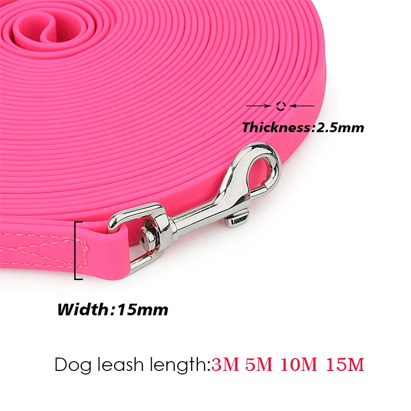 La laisse longue pour chien en PVC est un accessoire idéal pour vos promenades en plein air. Disponible en différentes longueurs (3m, 5m, 10m, 15m), elle convient aux petits et grands animaux de compagnie. Avec une largeur de 15mm, cette laisse est confortable pour votre chien. Fabriquée en PVC, elle est imperméable, durable et facile à nettoyer. Elle convient parfaitement à la marche, la course, l’entraînement et la natation. Cette laisse est adaptée aux chiens et aux chats de toutes tailles.