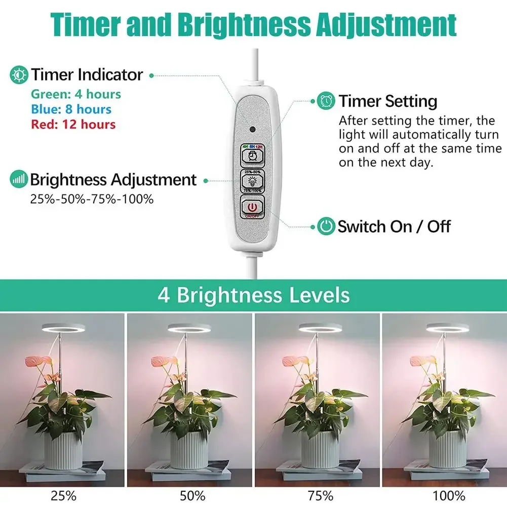 Le minuteur intégré est un atout majeur, permettant aux utilisateurs de régler facilement la durée d’éclairage sans intervention manuelle. Trois options de cycle (4, 8 ou 12 heures) s’adaptent à vos besoins.