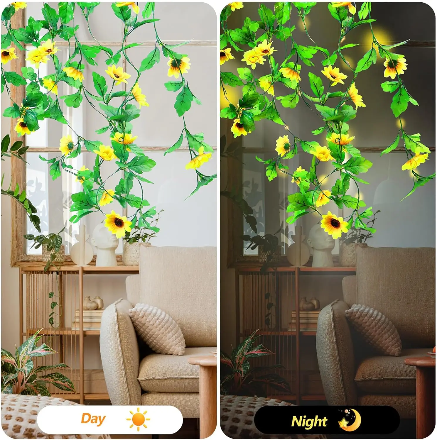 De jour, la lumière de tournesol est une chaîne de vignes de tournesol. La nuit, la lumière jaune chaude illuminera les coins de votre jardin, créant une atmosphère chaleureuse pour toute occasion. En tant que lumière d’ambiance de vacances, la lumière décorative de tournesol est un excellent choix.