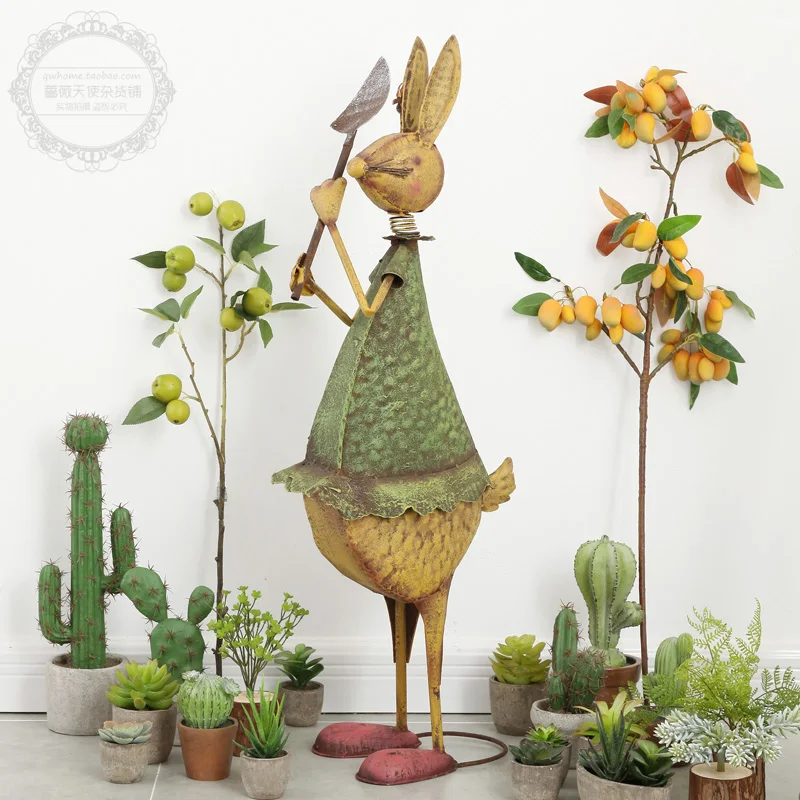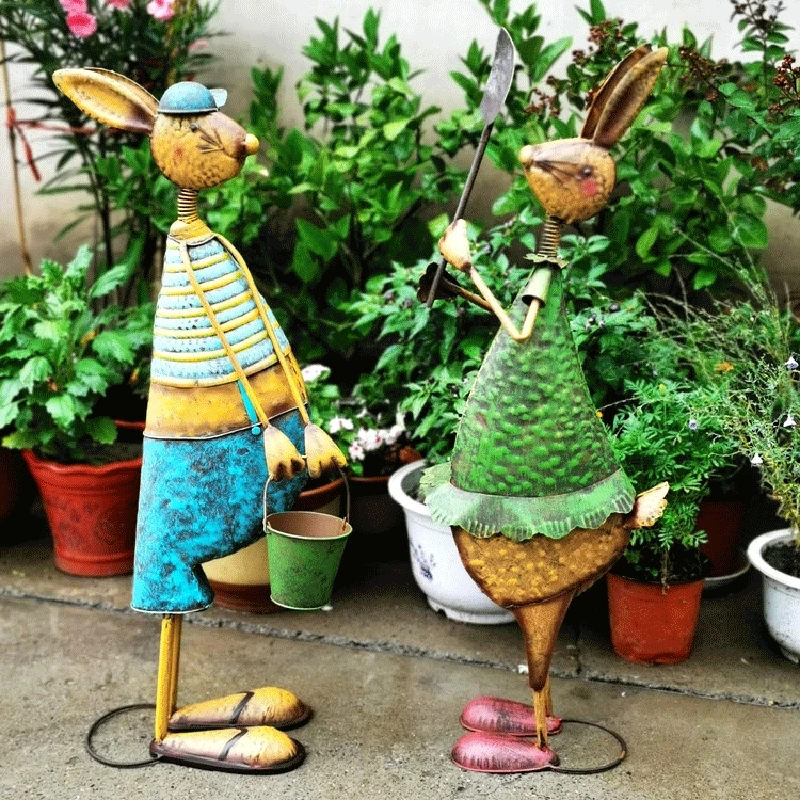 | Statue de lapin en fer Décoration de sol de jardin | Fer | Bénédiction | Illuminez et décorez votre maison | Décoration du sol |