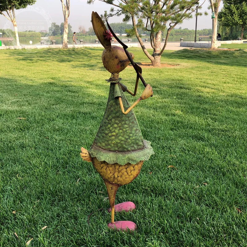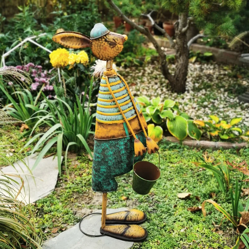 Statue de lapin en fer Décoration de sol de jardin