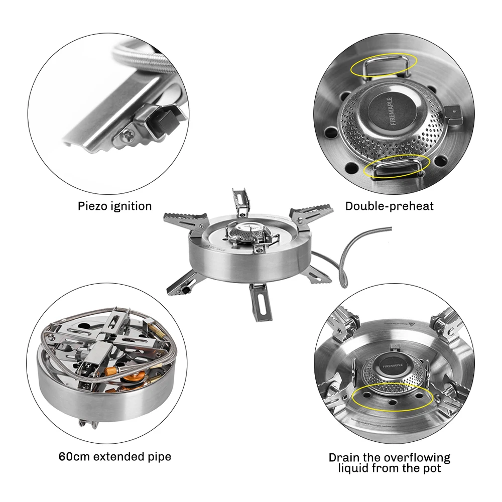 Voici les points clés du Fire Maple Saturn-Brûleur à gaz fendu :