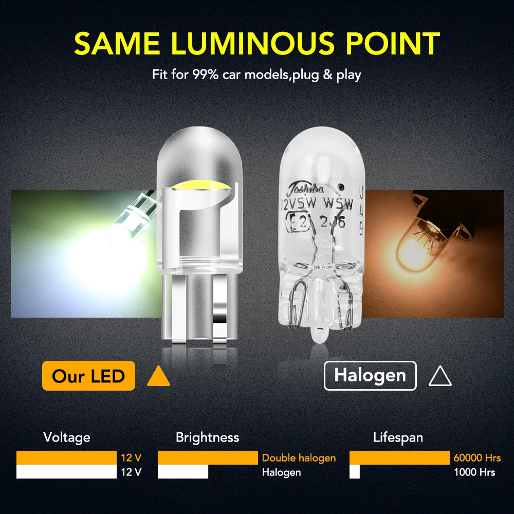 2. Veuillez confirmer que votre douille d’ampoules est T10 avant de passer la commande.
