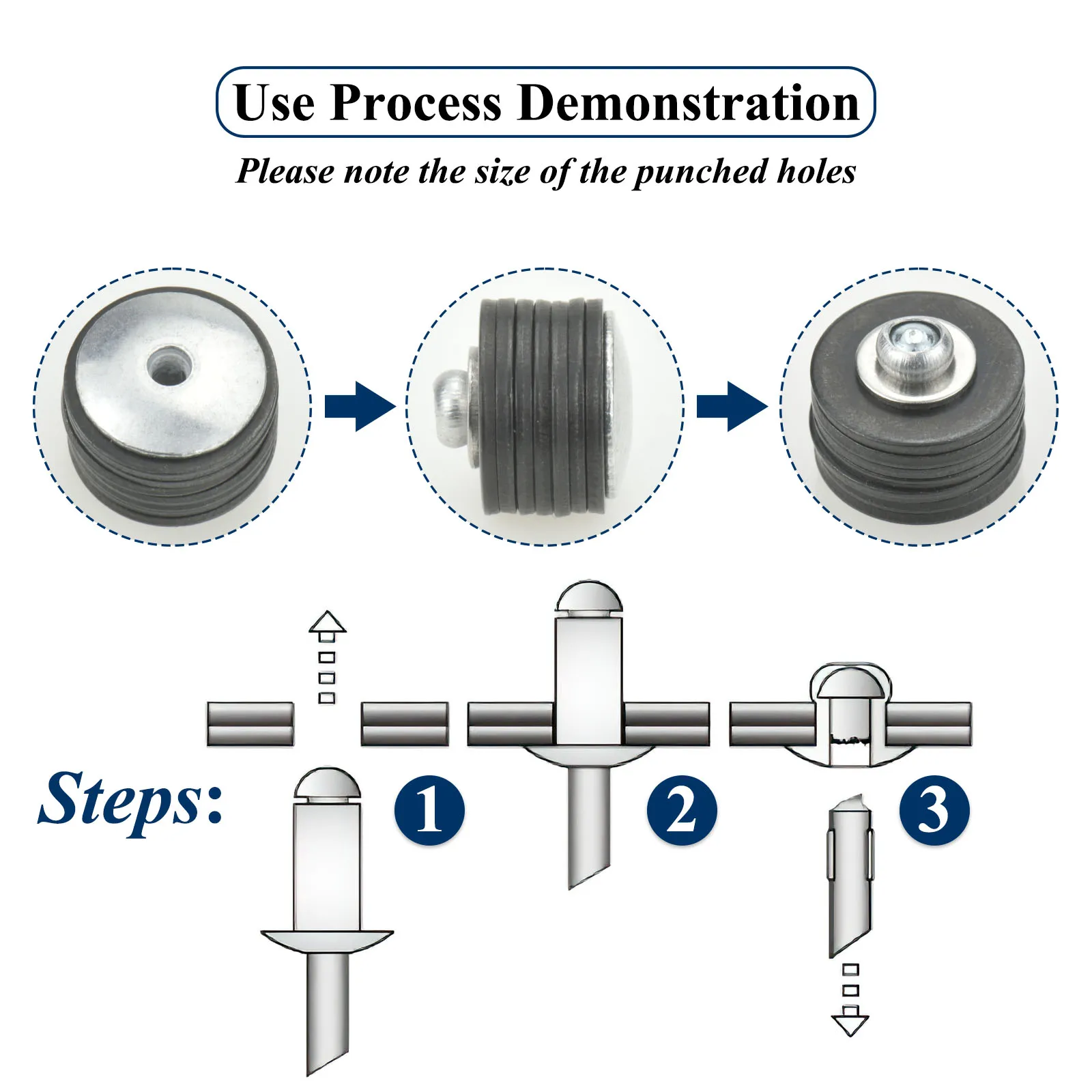 La grande bride de ce rivet ennemi offre une force de rivetage plus forte comparée aux rivets classiques. Elle dispose d’une surface de support plus grande, ce qui est idéal pour fixer des matériaux souples et pour l’épissage d’objets dans différentes scènes intérieures et extérieures.