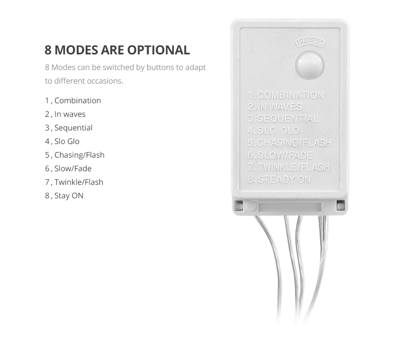 Cette guirlande lumineuse dispose de 8 types de modes de contrôle.