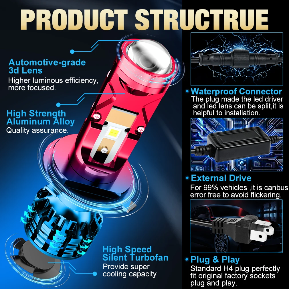 Les ampoules LED Mini budgétaire 100W H4 H7 sont des ampoules spécialement conçues pour les phares automobiles. Elles offrent un faisceau lumineux puissant et une durée de vie plus longue grâce à leur matériau métallique de qualité supérieure. Elles sont faciles à installer grâce à leur conception en aluminium tout-en-un et ne nécessitent aucune opération supplémentaire.
