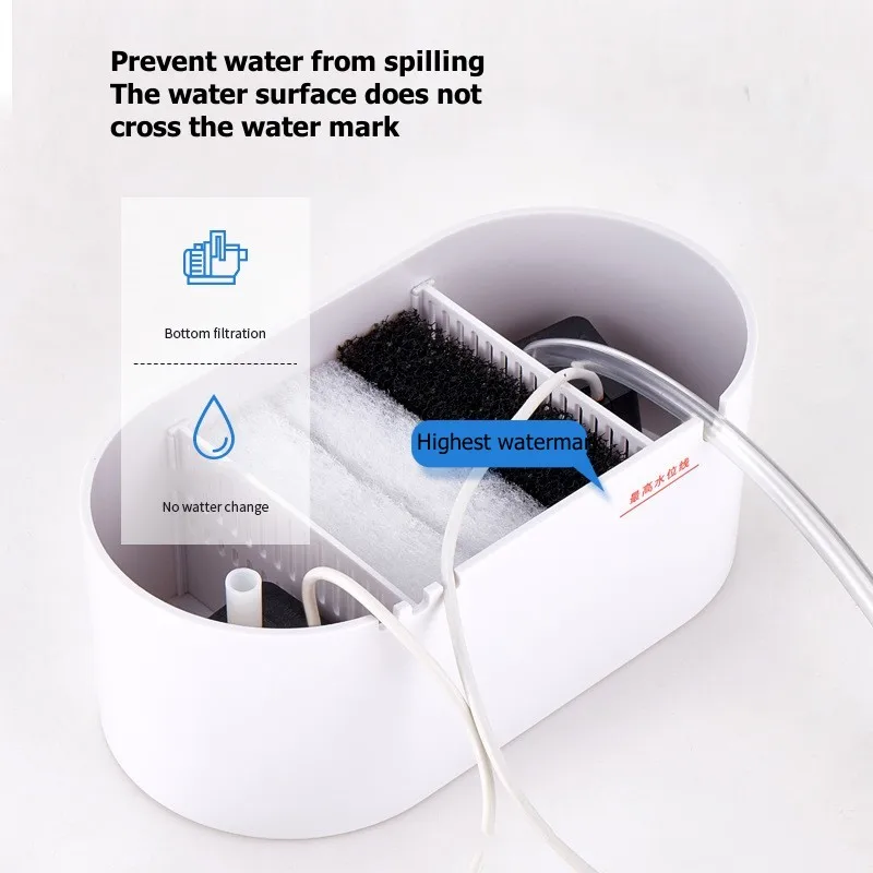 Pour l’entretien quotidien de l’aquarium, vous devez vérifier régulièrement le niveau d’eau, inspecter la pompe à eau, changer l’eau pour le nettoyage et essuyer régulièrement l’aquarium pour enlever la saleté.