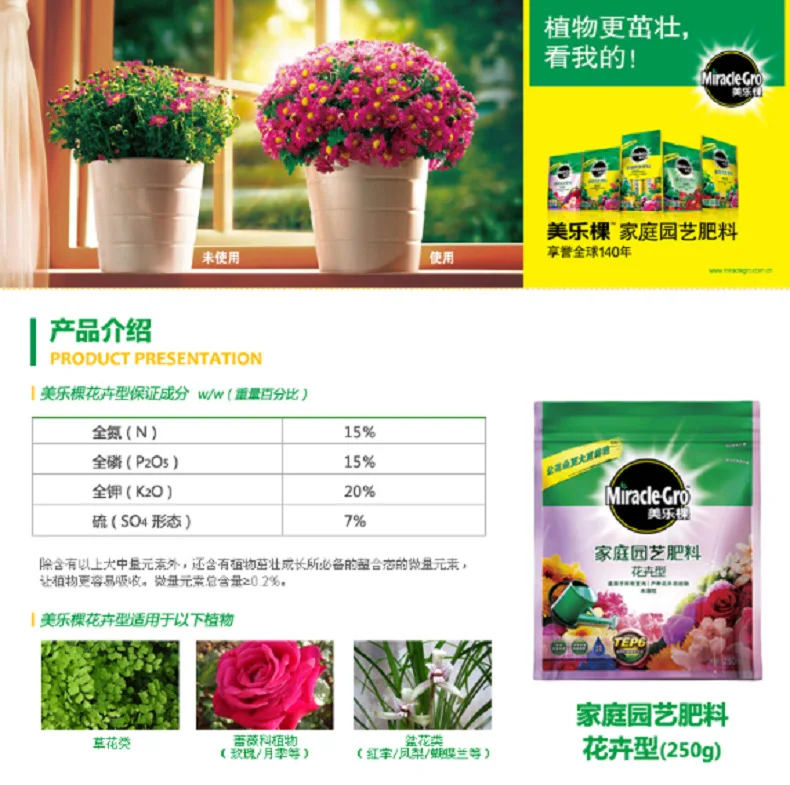 La poudre d’engrais soluble dans l’eau de type floral est développée spécifiquement pour les plantes à fleurs, les feuilles, les roses, les clématites et les hortensias. Cette poudre d’engrais a une formule nutritionnelle végétale unique qui fournit les nutriments essentiels nécessaires à la croissance saine de vos plantes familiales.