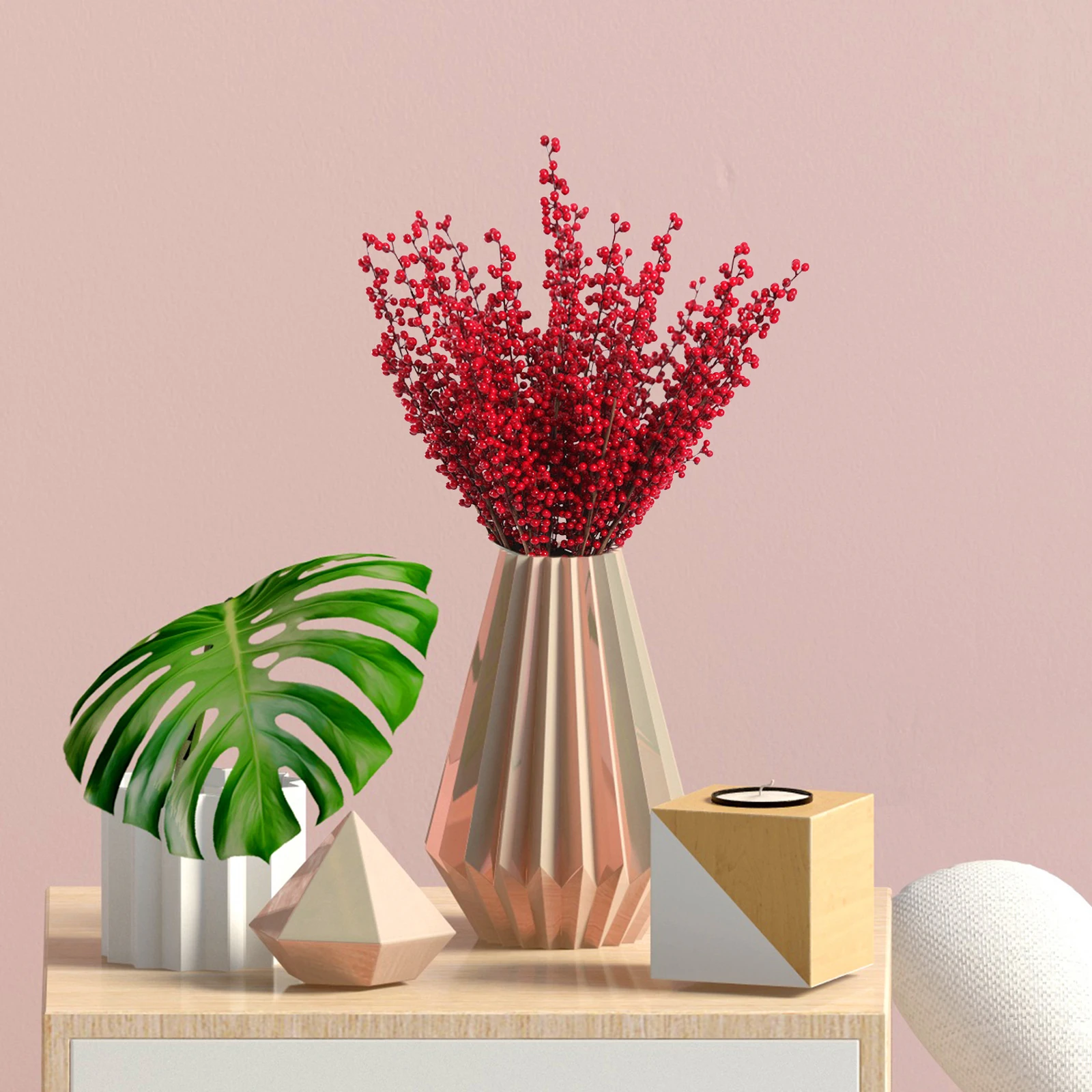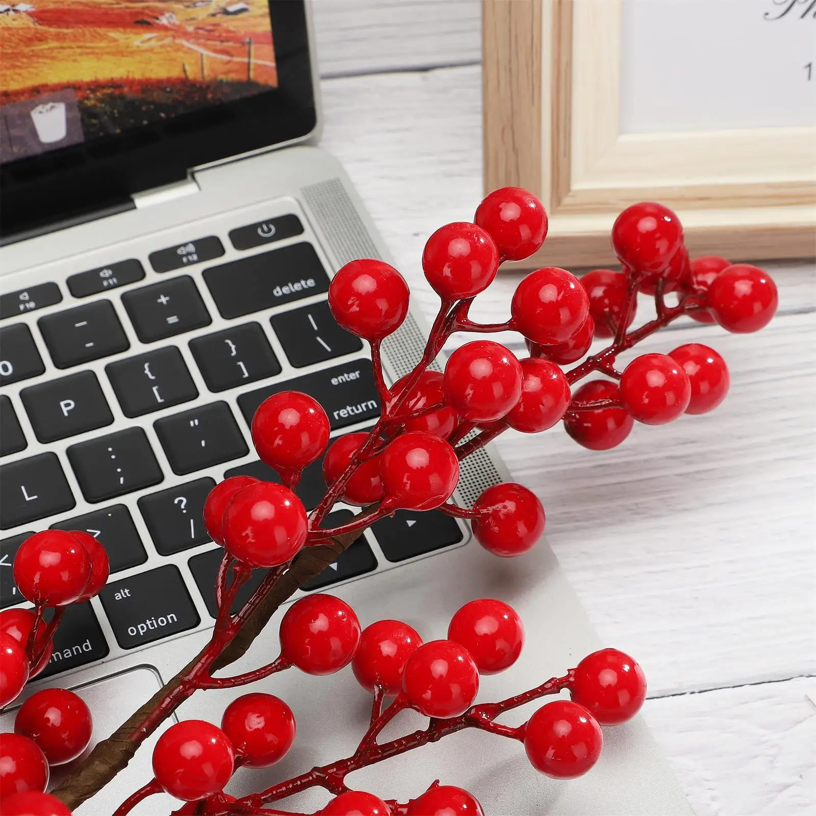 - Les baies rouges artificielles ont une belle couleur et une sensation de durabilité