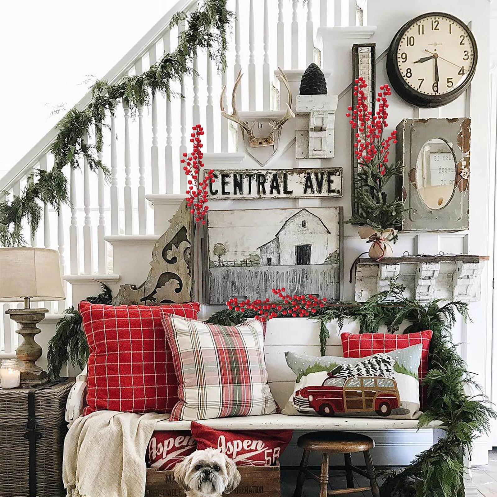| Les baies rouges magnifiques et réalistes sont parfaites pour décorer les arbres de Noël et les couronnes de Noël |