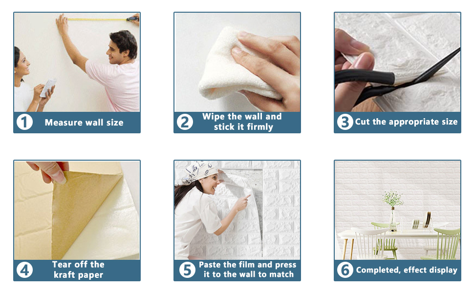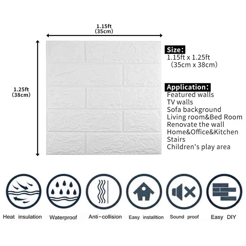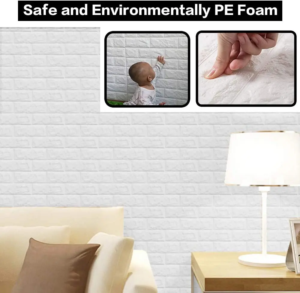 - Le papier peint de mousse de la brique 3D est SAFTY, aucune détection des métaux lourds néfastes (plomb, cadmium, mercure) au-dessus de la valeur standard, panneaux environnementaux de haute qualité de décor de mur.