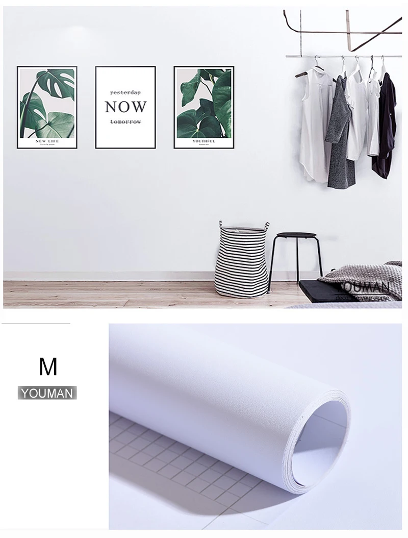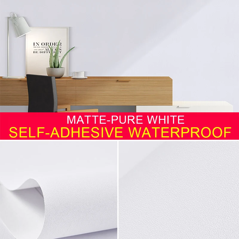 Le papier peint auto-adhésif en PVC blanc et noir pur mat est une solution de décoration murale en vinyle pour les meubles de salon et les armoires de cuisine. Il est disponible en différentes tailles : 60x100cm, 60x300cm et 60x500cm. Ce papier peint est facile à installer grâce à sa feuille autocollante sans perçage. Il ne laisse presque pas de lacunes lors de la pose et n’est pas facile à créer des bulles.
