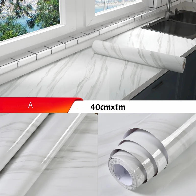 10M auto-adhésif Imitation marbre autocollant étanche à l’huile résistant aux hautes températures cuisine meubles rénovation papier peint