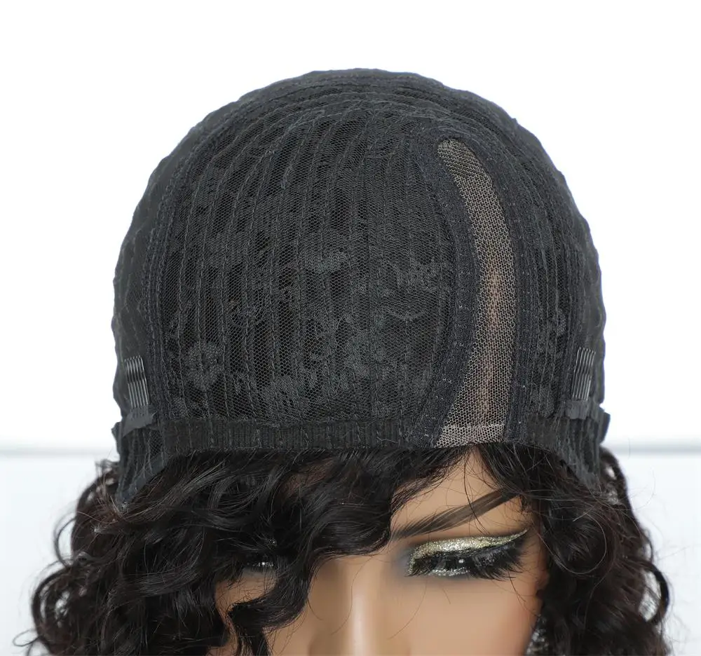 Notre avis : Cette perruque de cheveux humains bouclés Jerry avec frange et Bob court est idéale pour les femmes noires. Elle est fabriquée à la machine avec une densité de 180 et offre