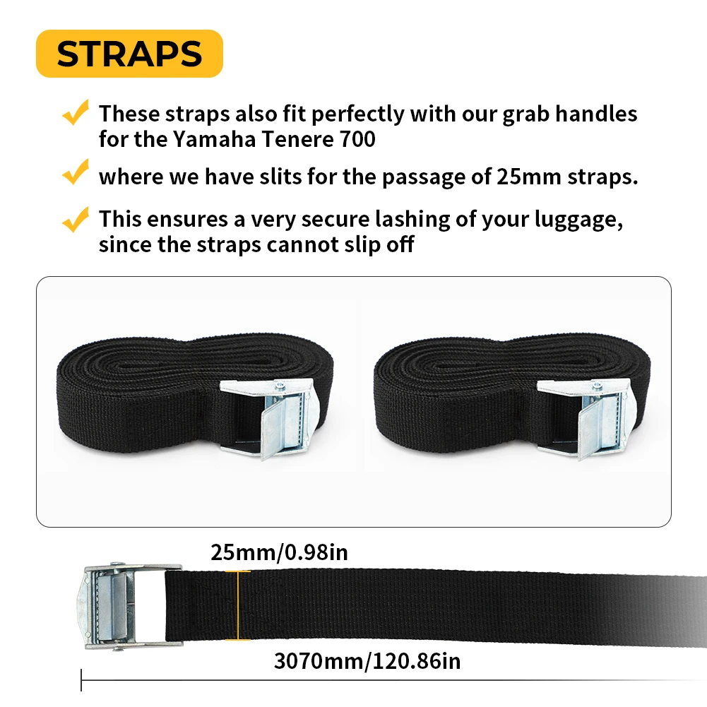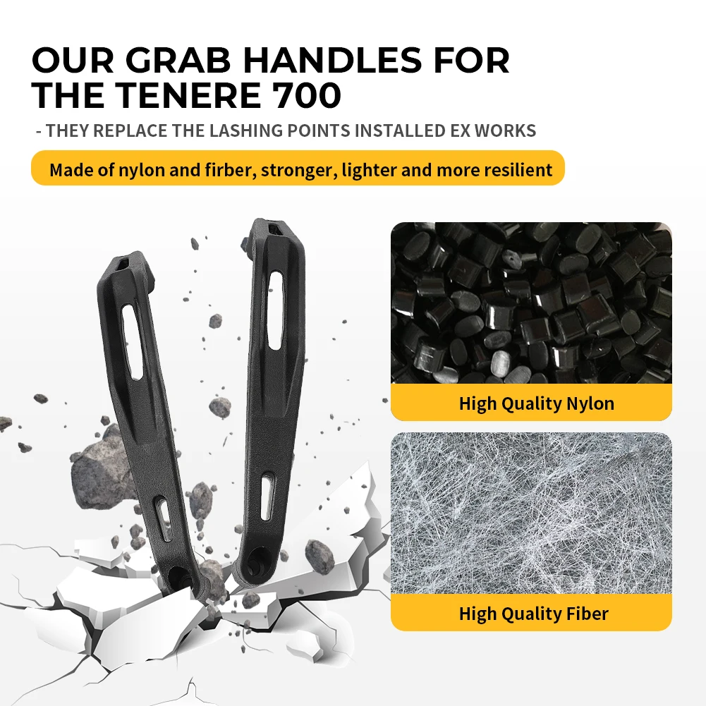 Les poignées de maintien arrière passager pour Yamaha Teneré 700 sont conçues pour offrir une prise sûre au passager et ne sont pas spécifiquement conçues pour supporter une charge supplémentaire. Il est donc recommandé de ne pas utiliser ces poignées pour transporter des charges lourdes.