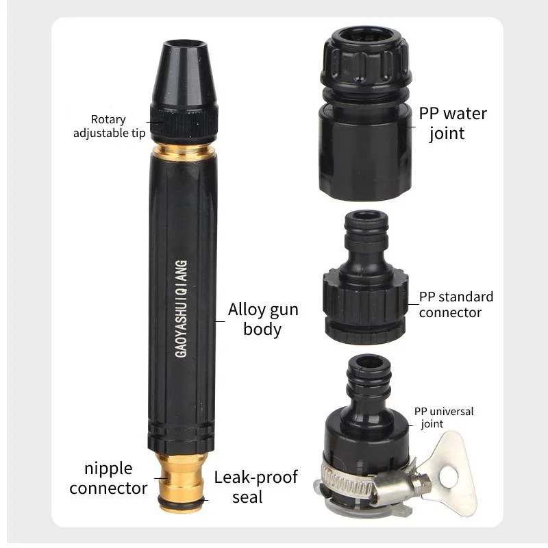 Le pistolet à eau portable à haute pression est un outil polyvalent conçu pour le nettoyage de votre voiture, le lavage de votre jardin ou l’arrosage de vos plantes. Fabriqué en alliage d’aluminium robuste, il offre une construction rigide et résistante à l’usure. Sa finition anti-âge givrée le rend également résistant à la rouille.