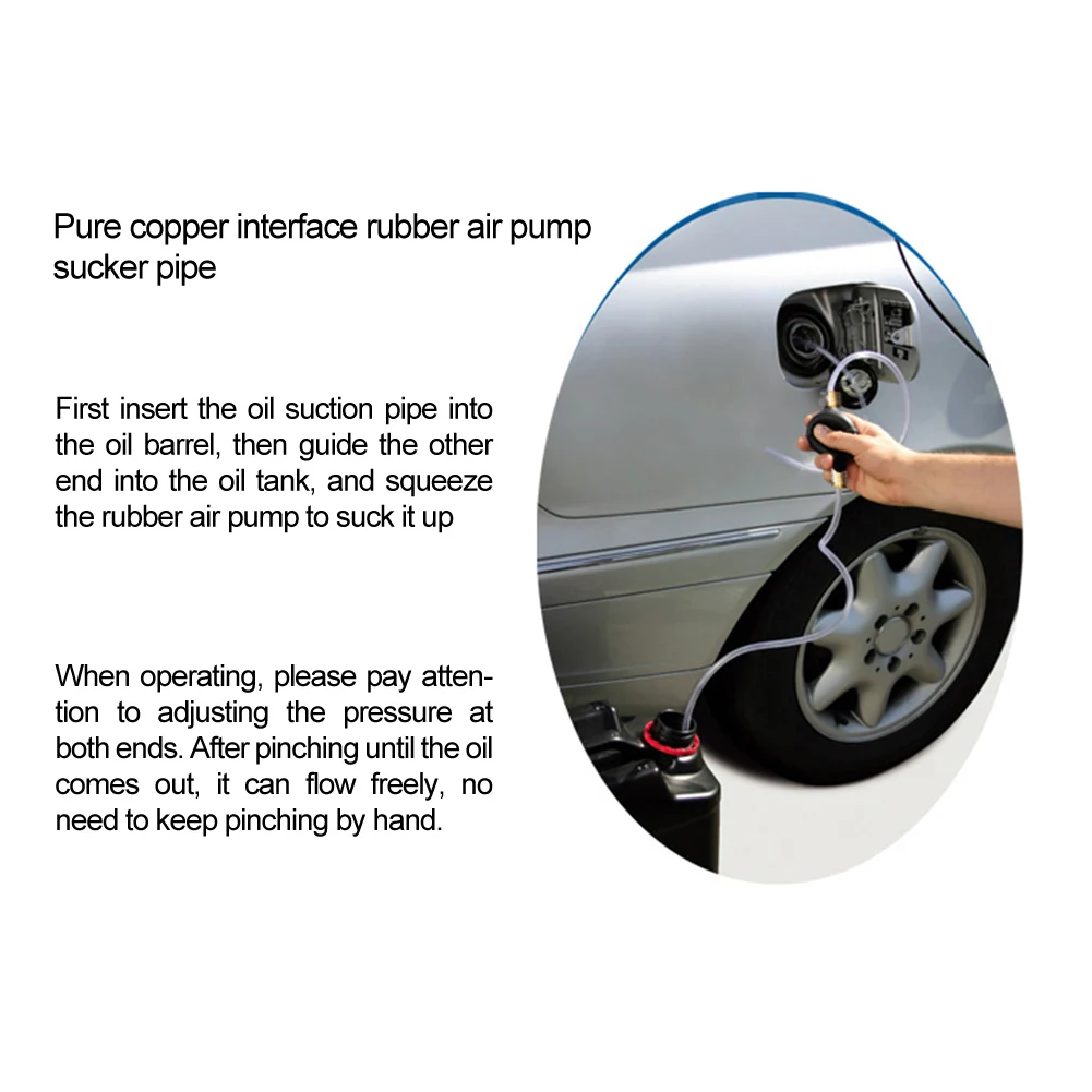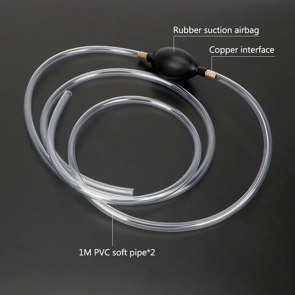 La pompe est livrée avec un tuyau en PVC flexible de 1m de long de chaque côté, avec une interface en cuivre pur, ce qui la rend durable et résistante à l’huile. Elle est disponible en noir avec une couleur transparente.