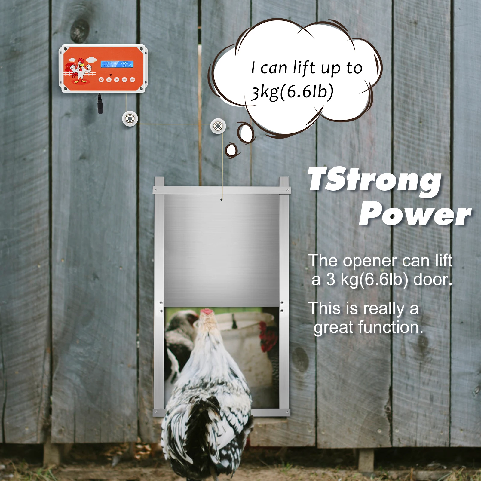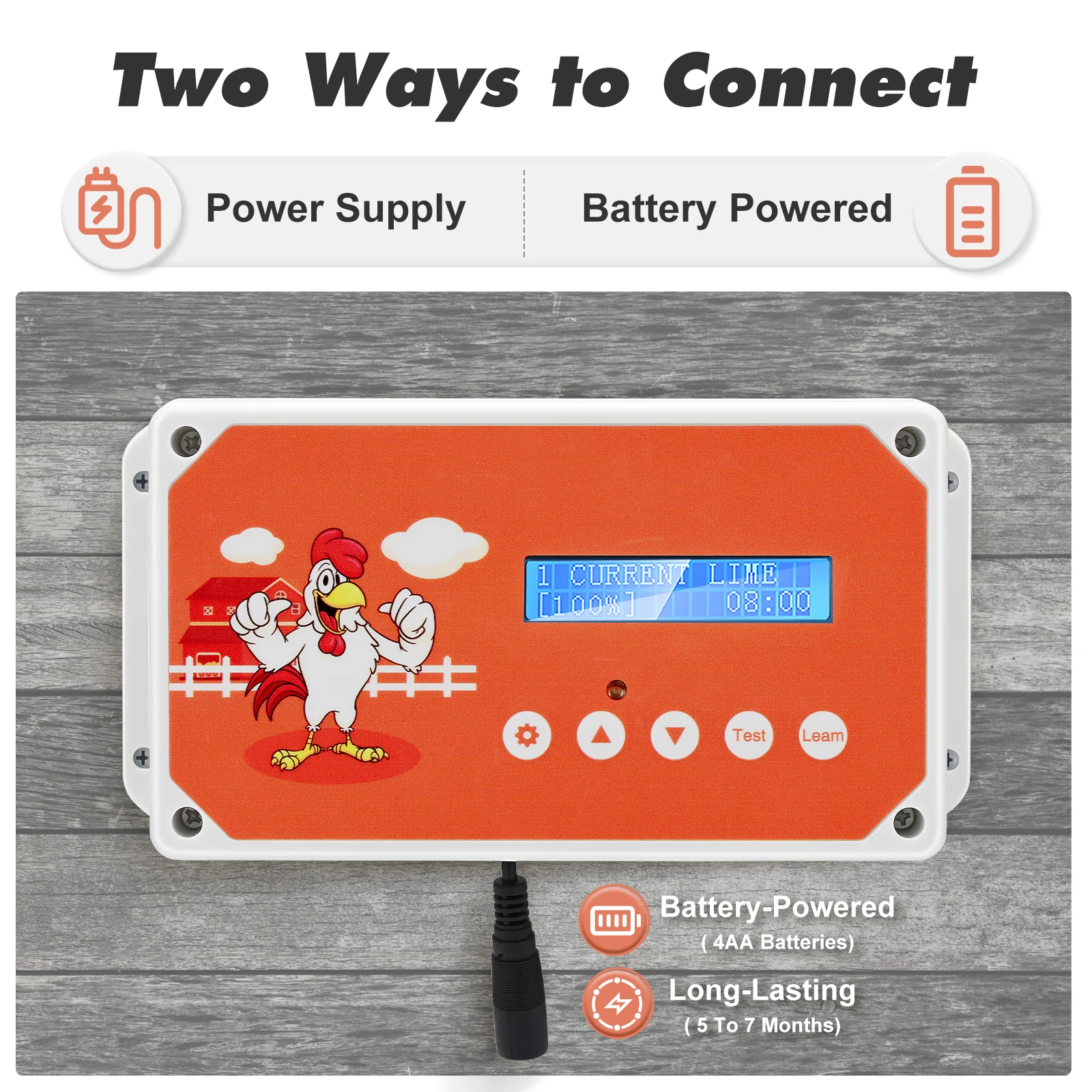 Vous pouvez facilement régler l’heure de l’ouverture et de la fermeture de la porte en fonction de vos besoins. Cette fonction vous permet d’automatiser les horaires d’ouverture et de fermeture du poulailler.