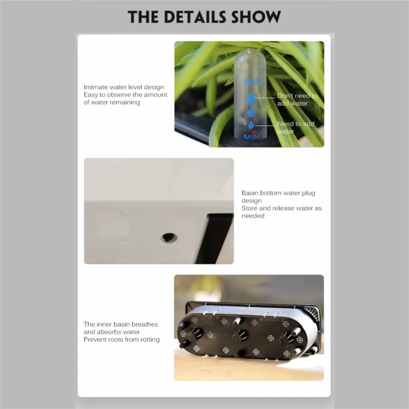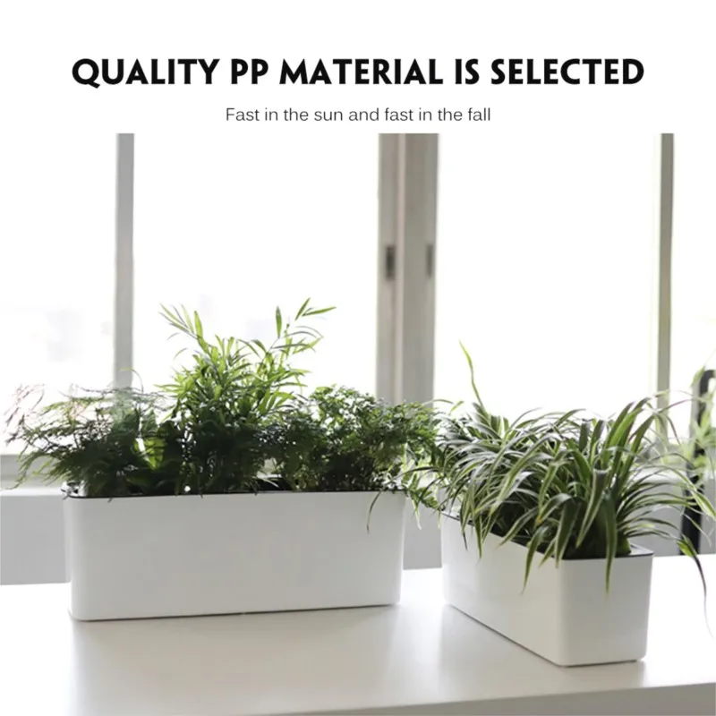 Voici les points importants à retenir du pot de fleur rectangulaire à absorption d’eau automatique, jardinière d’arrosage automatique, bureau, hôtel :