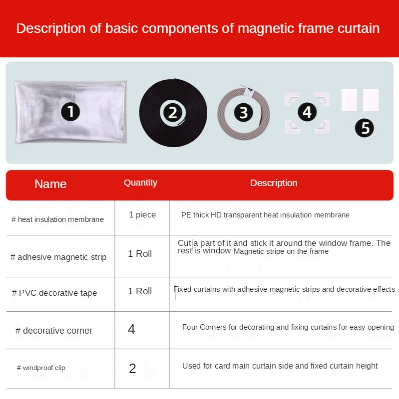 Le film d’isolation thermique coupe-vent magnétique est le dernier produit innovant fabriqué à partir de matériaux magnétiques de haute qualité et d’un film de matériau TPU incolore, inodore et transparent. Il peut être ajusté en fonction des exigences de taille des utilisateurs et se distingue par sa simplicité d’installation et d’utilisation, ainsi que par sa qualité.
