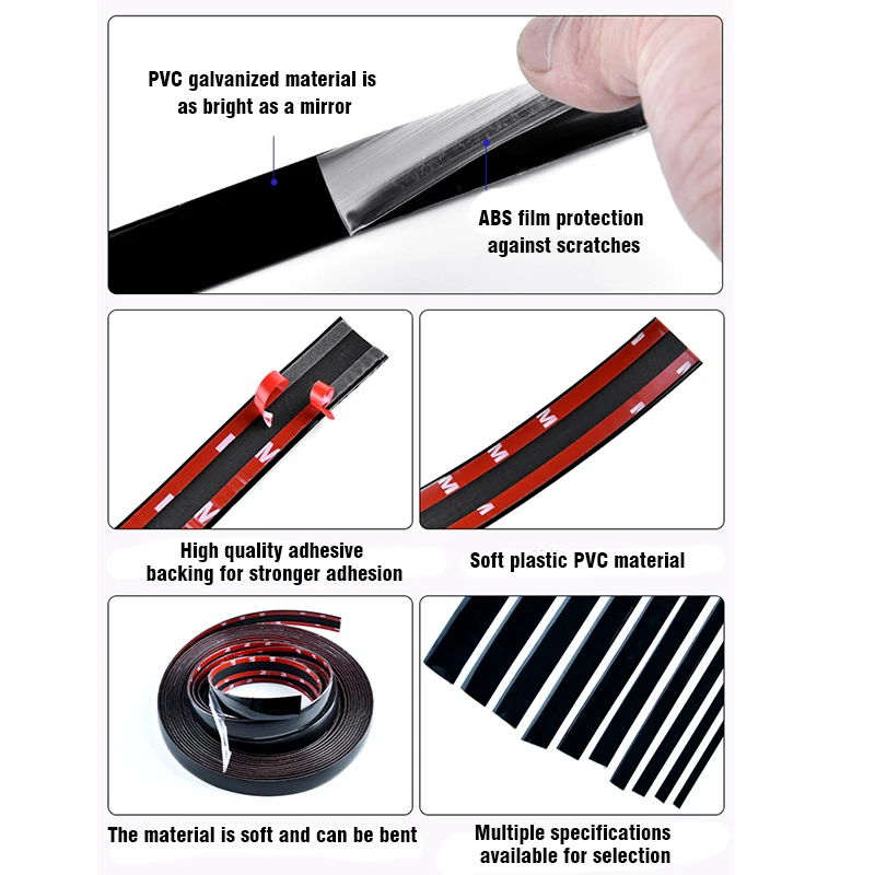 Autocollant universel de protection anti-rayures pour porte automatique Décorer le style de voiture Garniture de protection des bords de fenêtre Garniture de carrosserie noire argentée